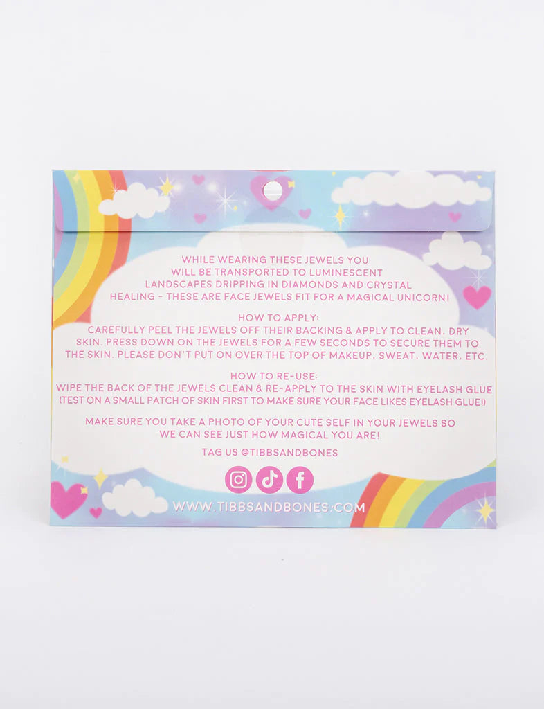 Peel and stick - a bunch of cute face jewels to play with! These look great over the eyebrows, or peel and pop them wherever else you think looks magic! These are super easy to wear, simply peel them off and stick them on - make sure you have clean & dry skin when you apply them for long wear!