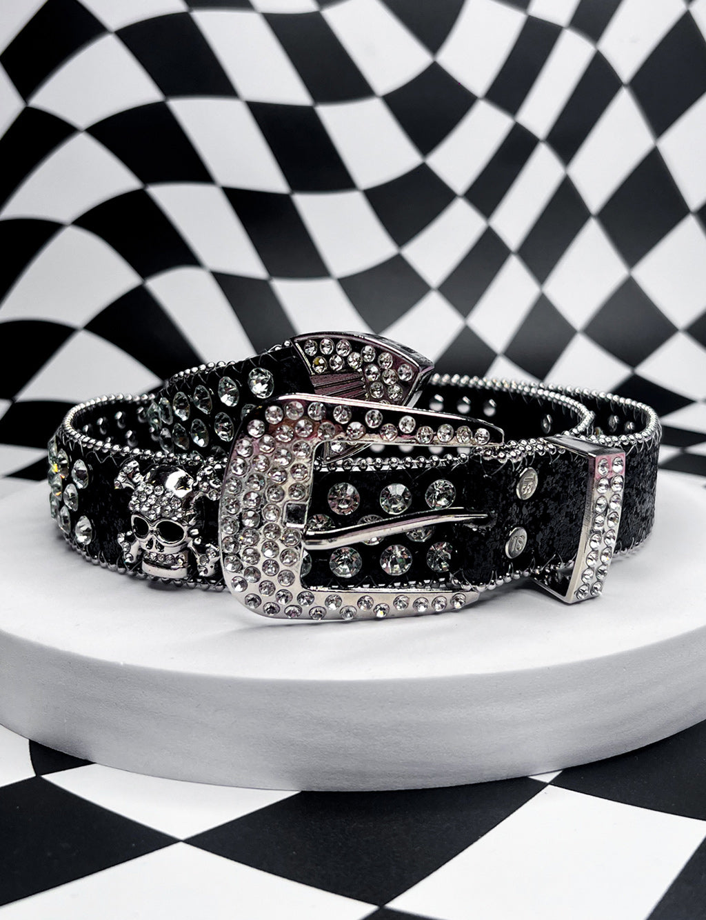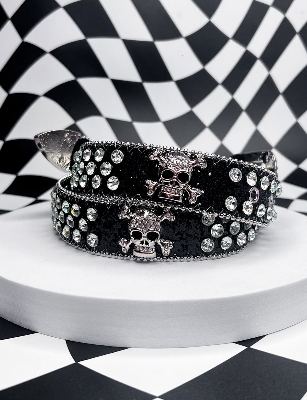 RHINESTONE SKULL COWGAL BELT - BLACK