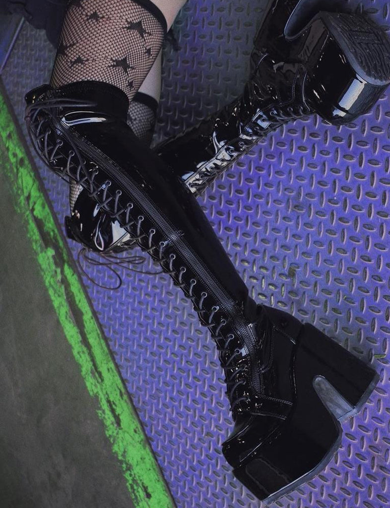 - Lace-Up Stretch Thigh-High Boot