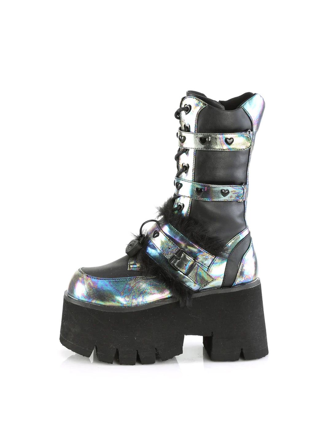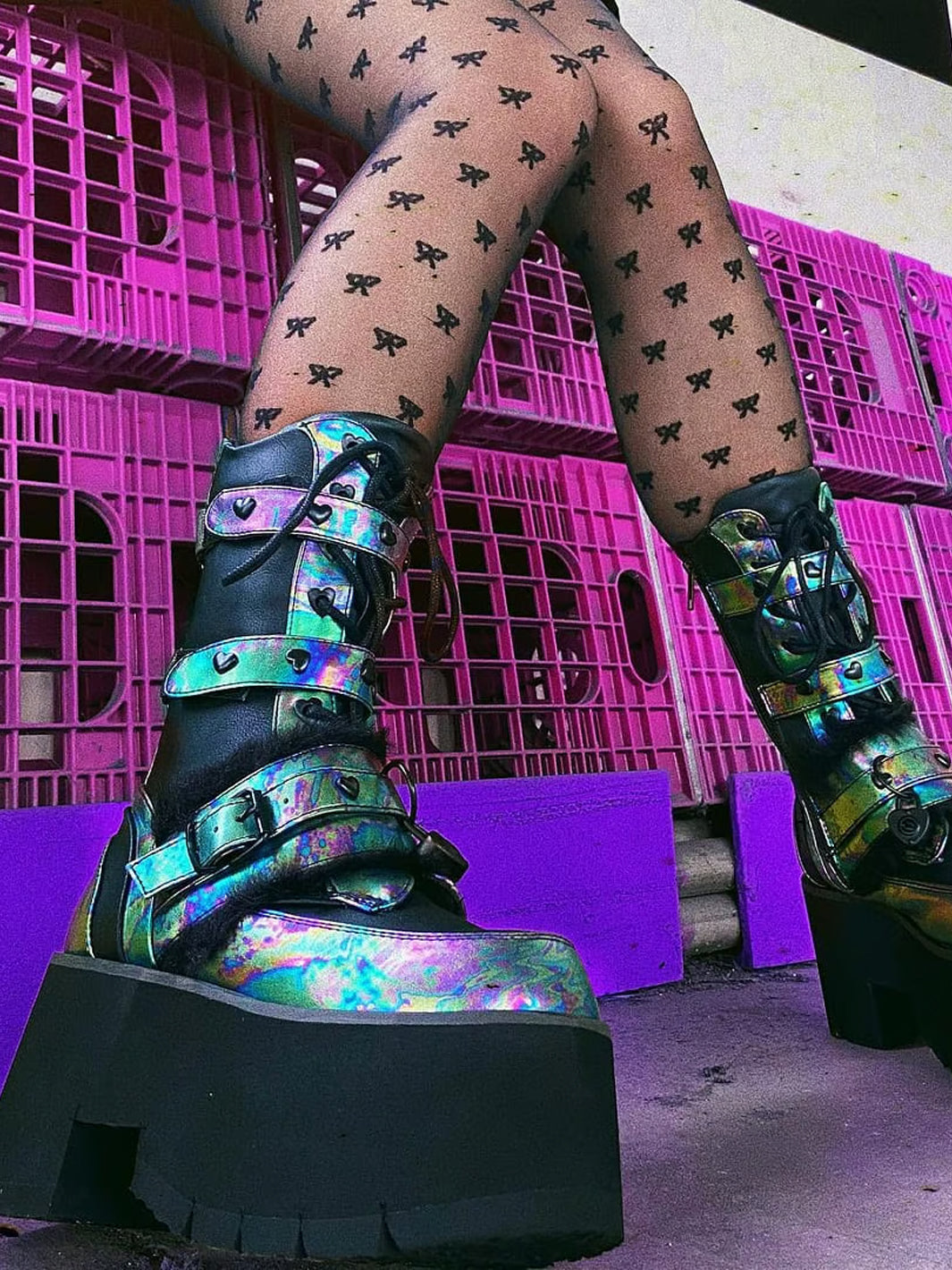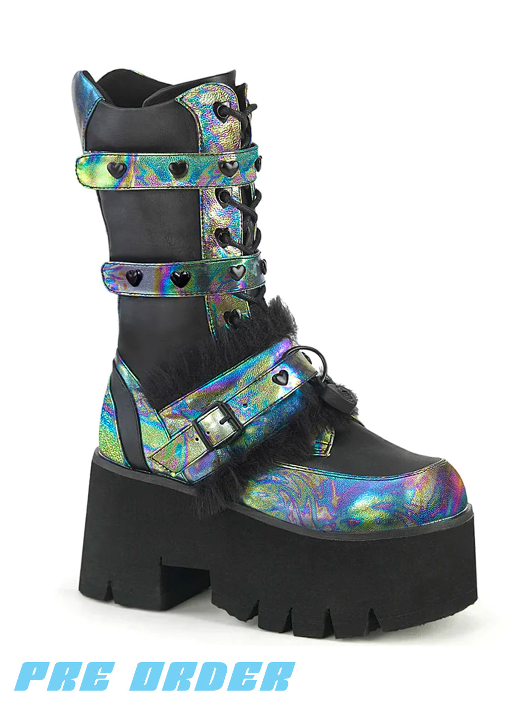 DEMONIA ASHES-120 BOOTS - BLACK GREEN OIL SLICK ✰ PRE ORDER ✰