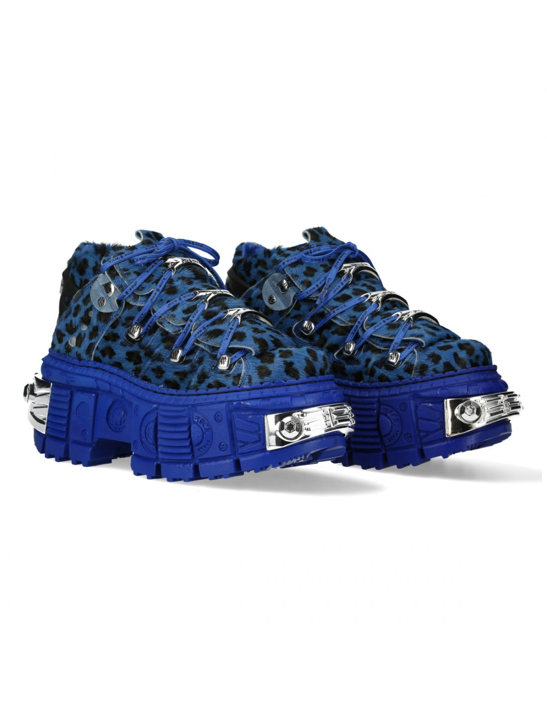 New Rock - The ultimate goth footwear brand from Spain! From the ICONIC collection comes the M-106WALL-C30, an electric blue leopard ankle boot built with New Rock’s signature heavy platform. An ultra-rare style made to stand out in the crowd, finished with bold laces and premium materials.