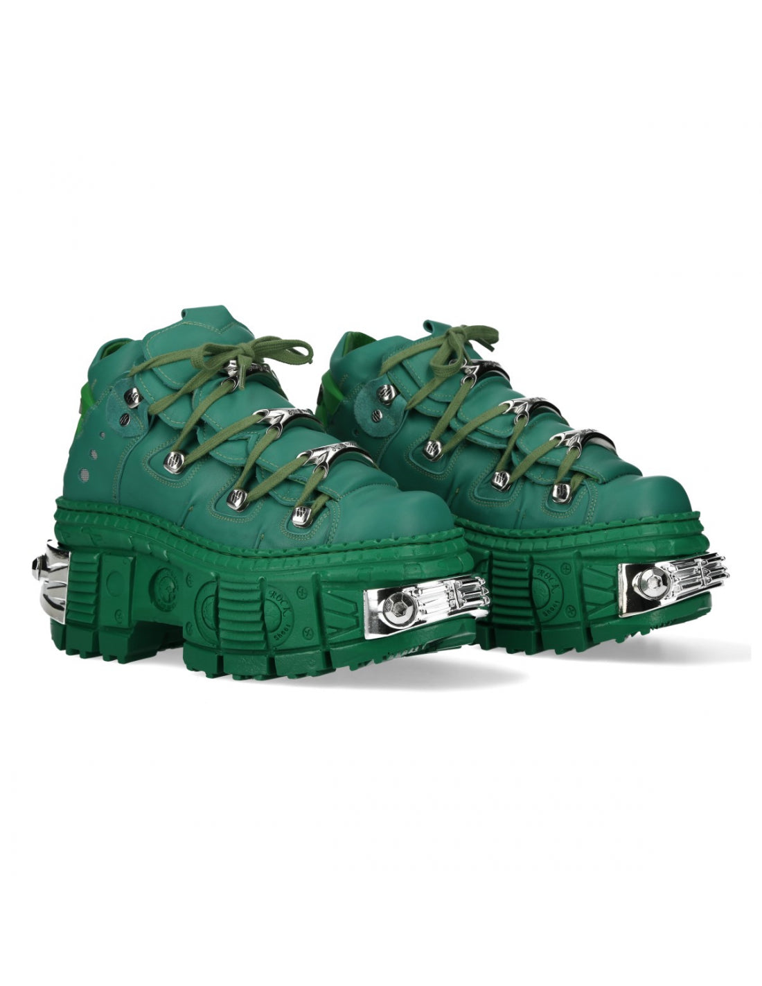 New Rock - The ultimate goth footwear brand from Spain! From the ICONIC collection comes the M-106WALL-C29, a striking green leather ankle boot built with New Rock’s signature heavy platform. An ultra-rare style made to stand out in the crowd, finished with bold laces and premium materials.