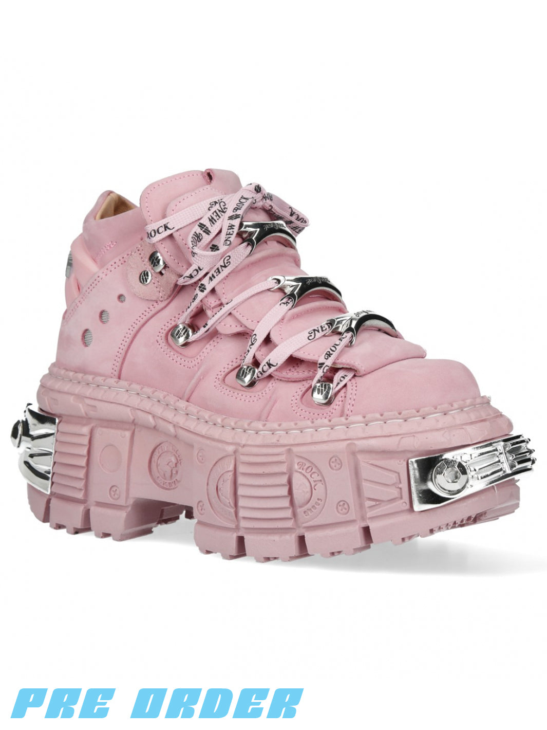 New Rock - The ultimate goth footwear brand from Spain! From the ICONIC collection comes the M-106WALL-C30, a bold baby pink leather ankle boot built with New Rock’s signature heavy platform. An ultra-rare style made to stand out in the crowd, finished with bold laces and premium materials.