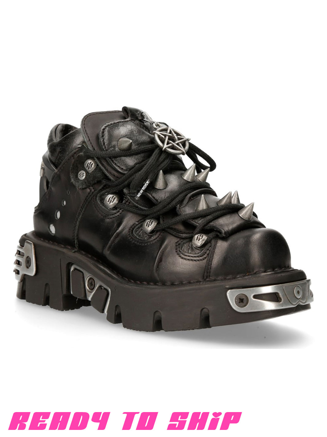 These Platform ankle boots have the most amazing detailing and will have you feeling a certain way. These give off classic gothic vibes with the big chunky platform and silver studded detailing, they even have a fun pentagram pendant on the front. The signature New Rock embossed sole morphs into a silver studded detailed stomper that makes a statement and gives a gothic chic vibe.