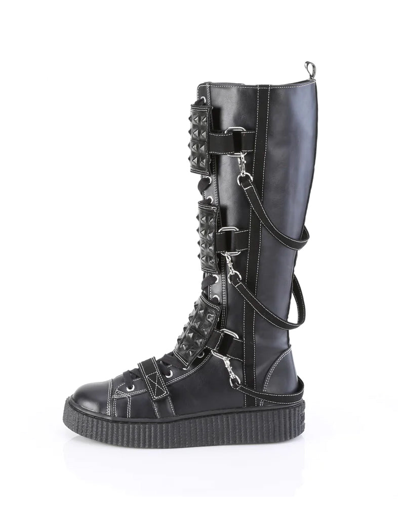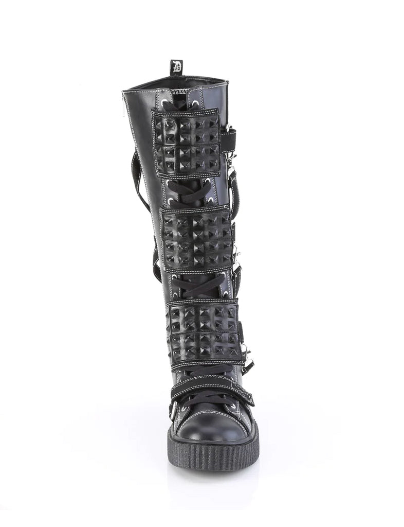- Rubber Sole Round Toe Lace-Up Front Knee High Creeper Sneaker Boot