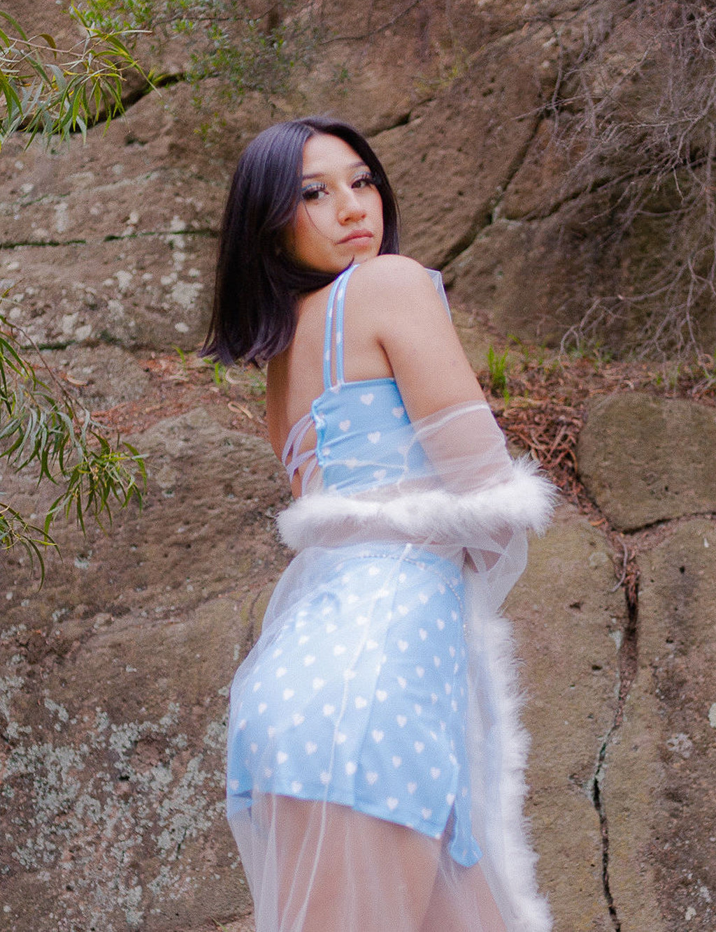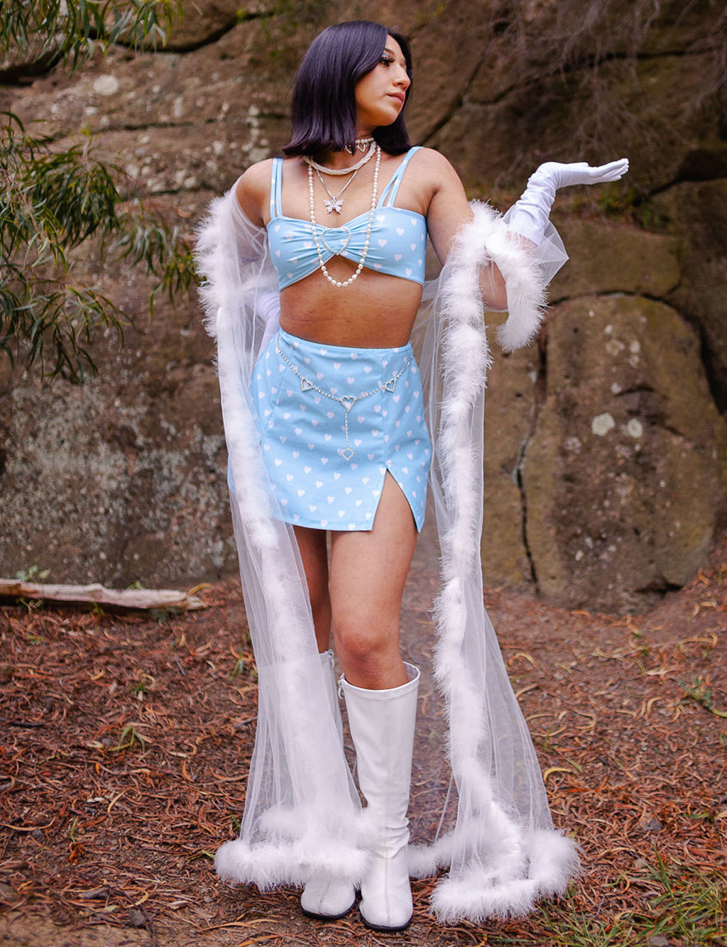 Feel your arctic fairy FANTASY in this sheer and magical kimono. With fluffy trim, it is perfect for a fairy tea party!