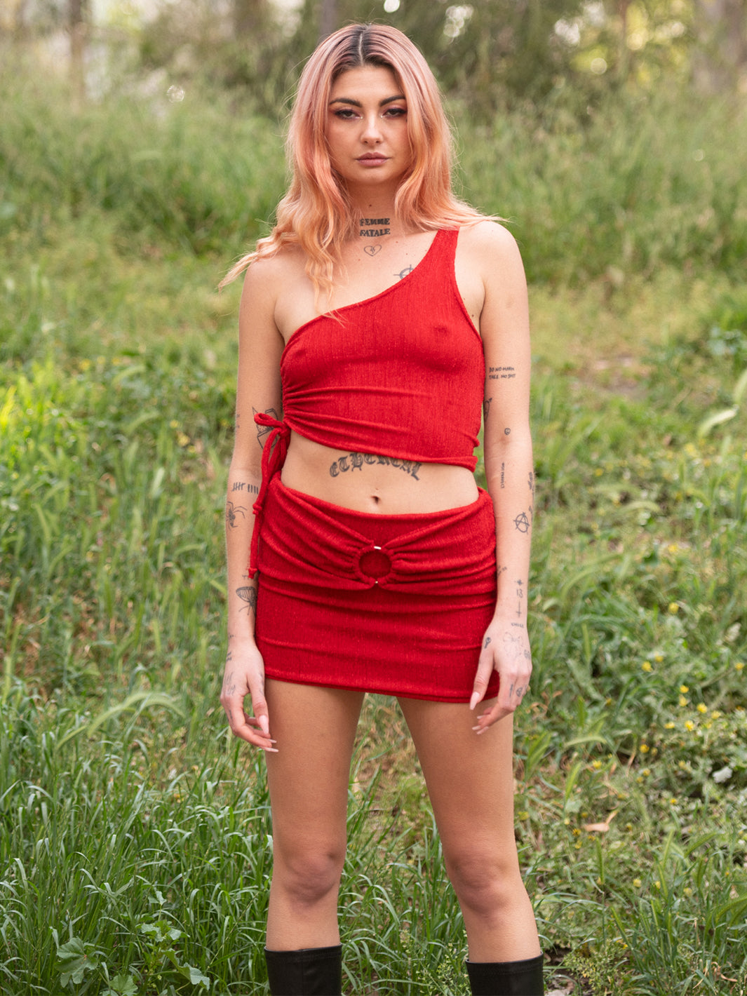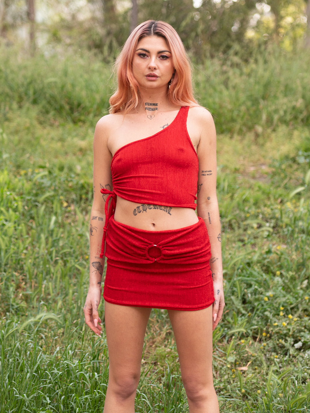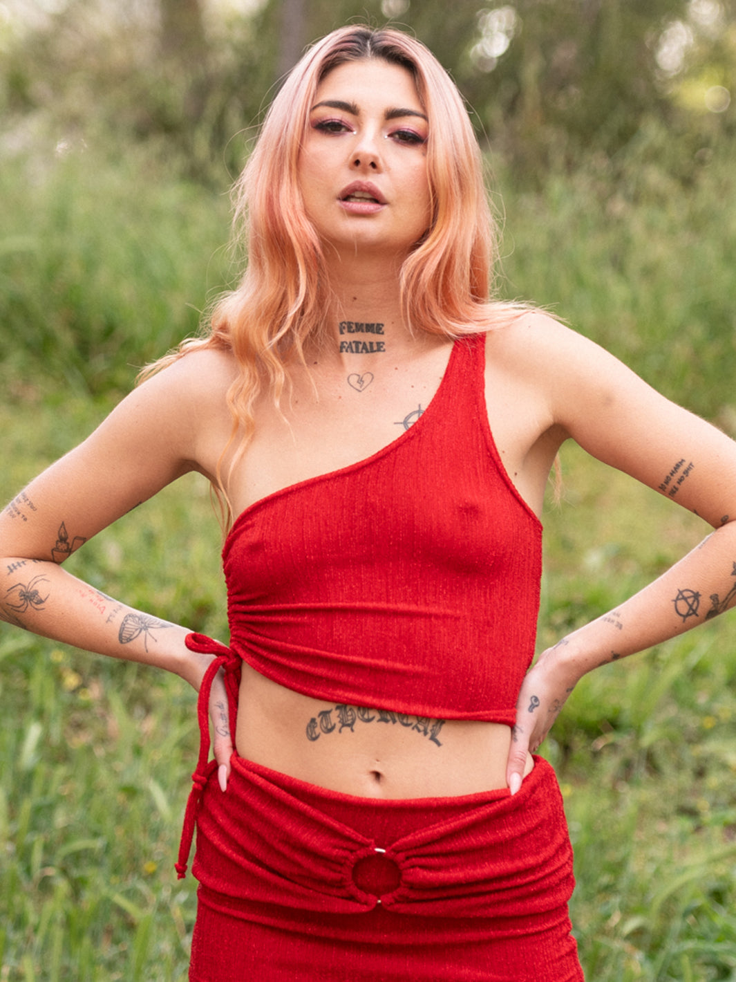 This gorgeous one shoulder top comes with cute side ruching detail perfect for wearing to the doof - style it solo or with the matching Stormi Skirt.