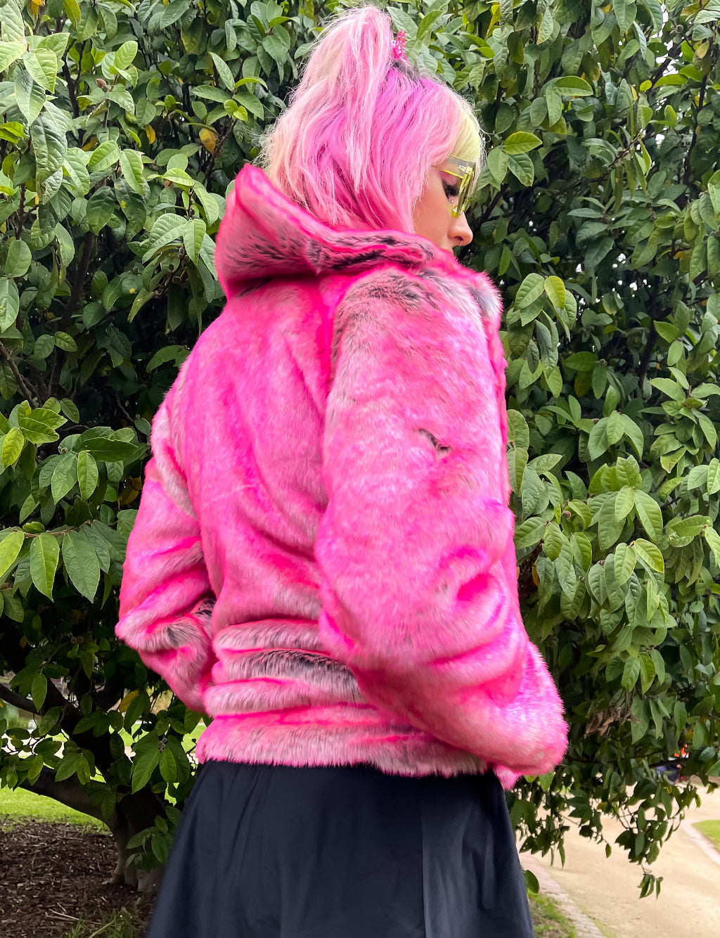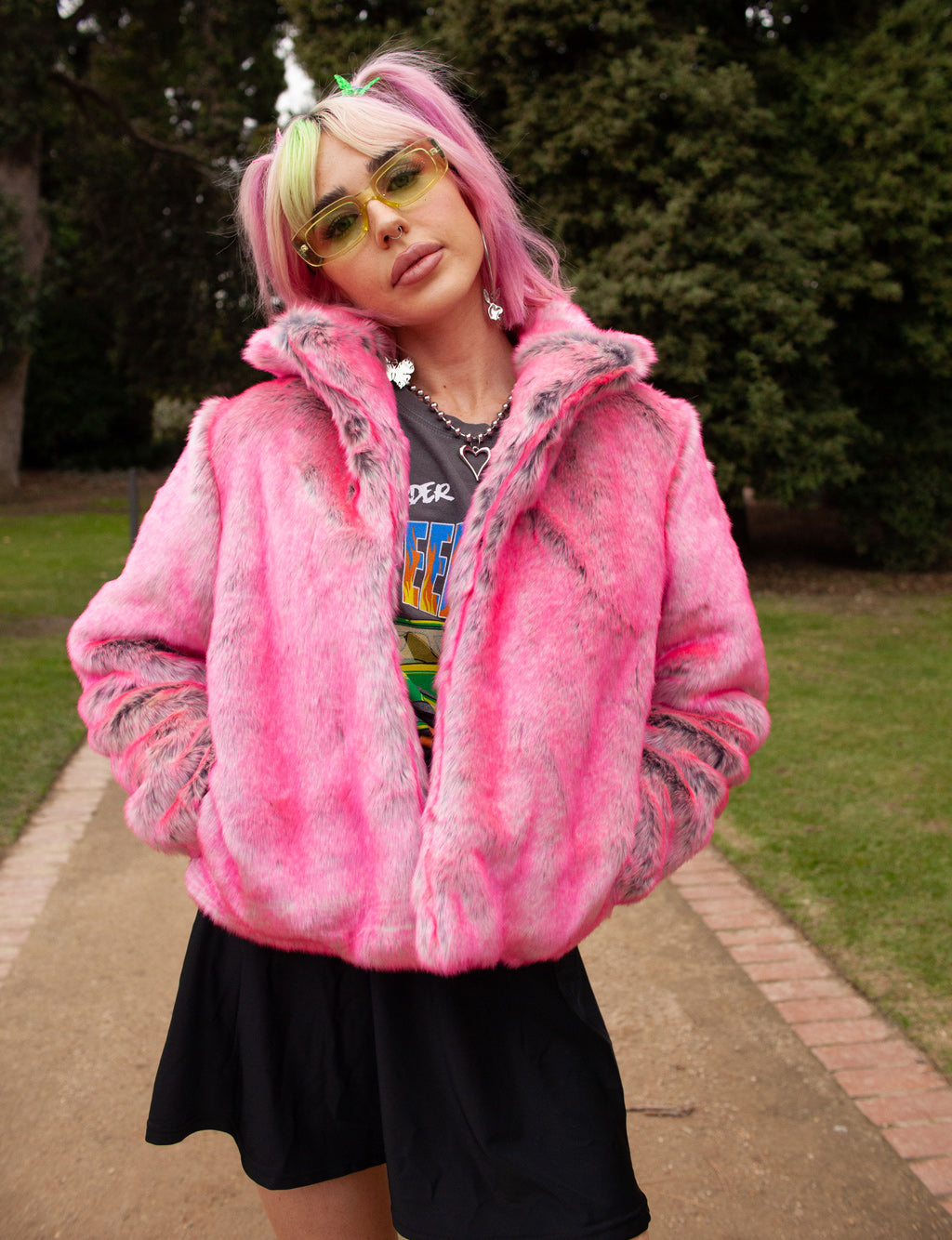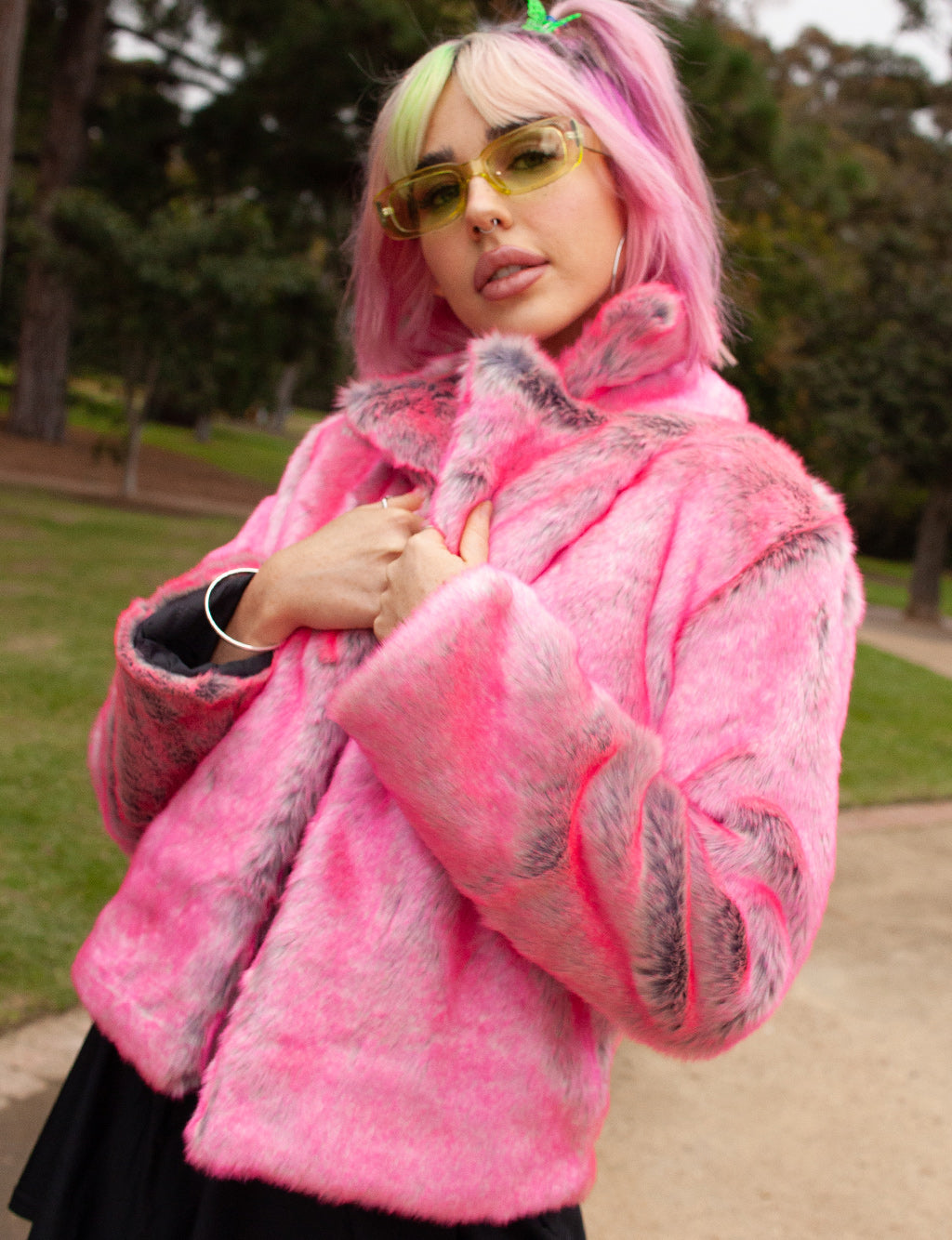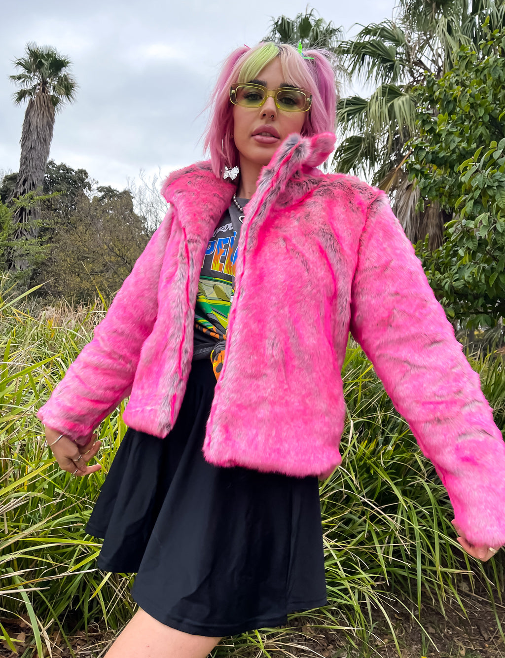 Barbie called and she wants her jacket back! We are beyond obsessed with this cute new pink faux fur jacket. You'll never be cold again after slipping this bad boy on. Super high quality faux fur and a super cute crop length, perfect for any occasion.