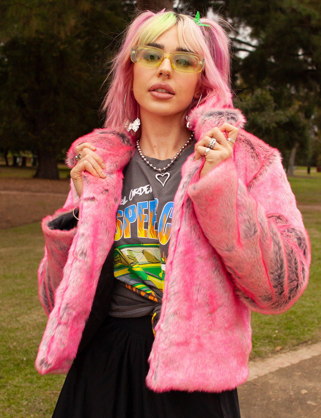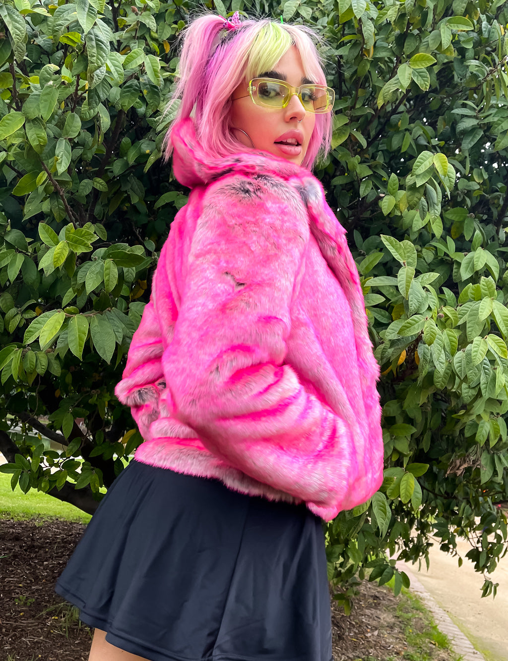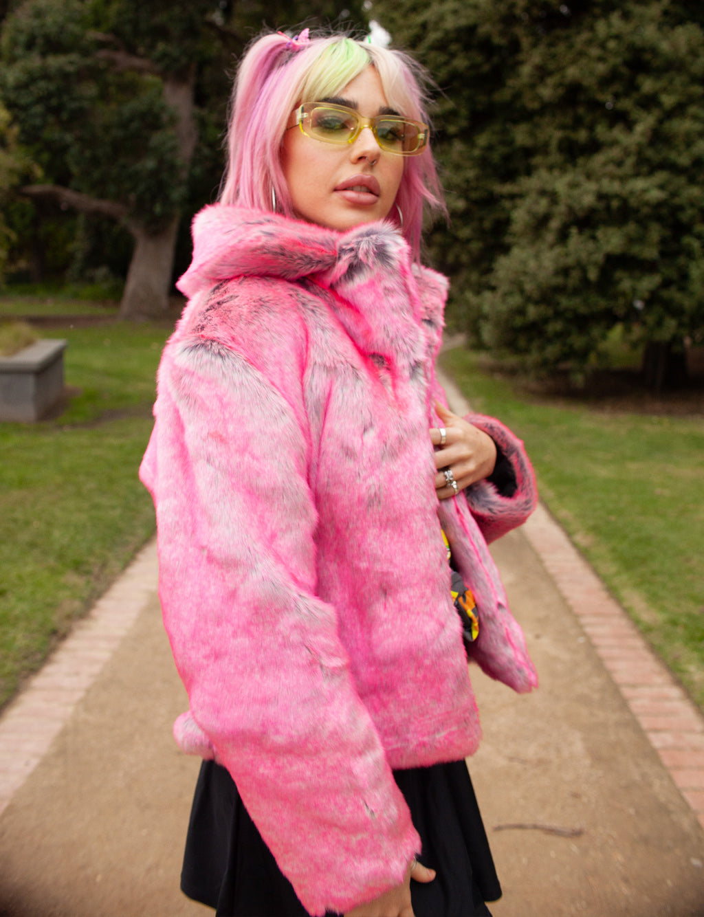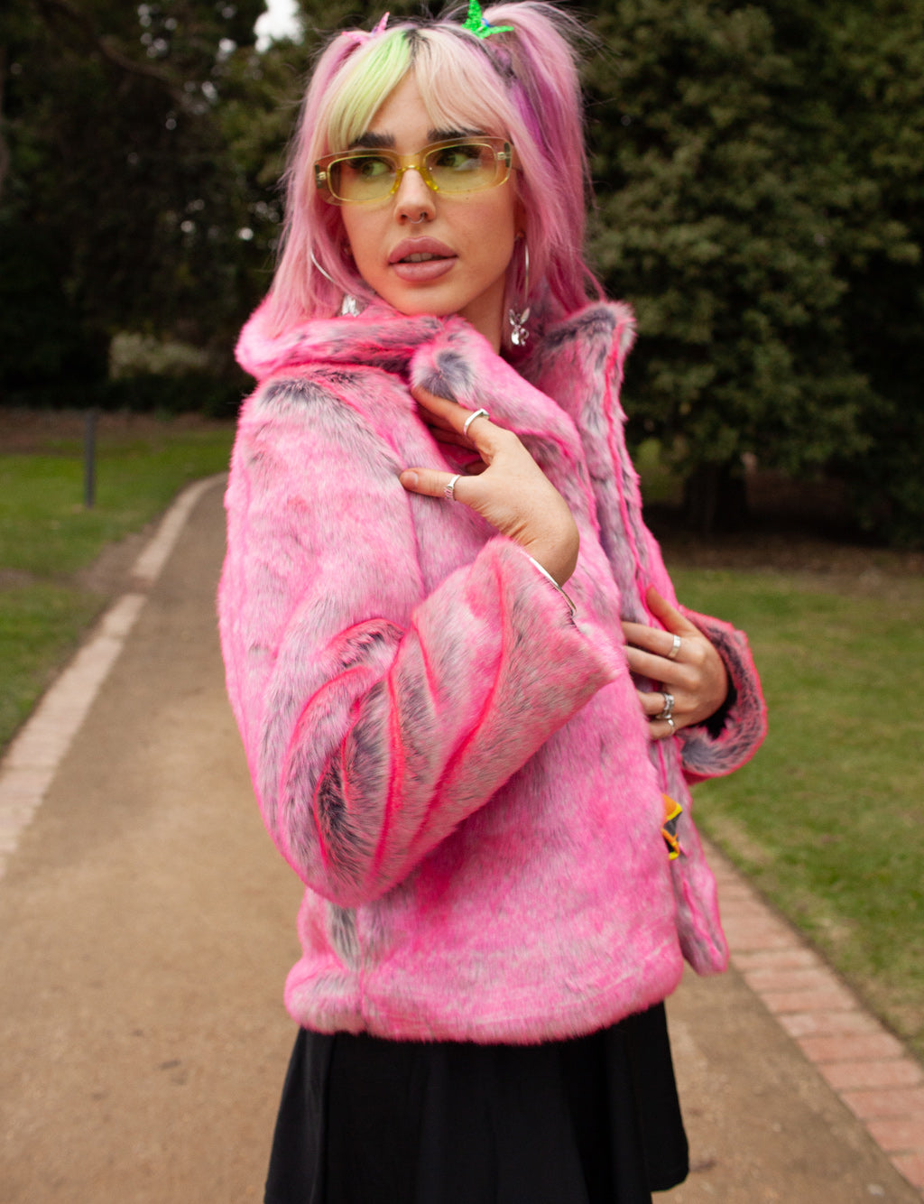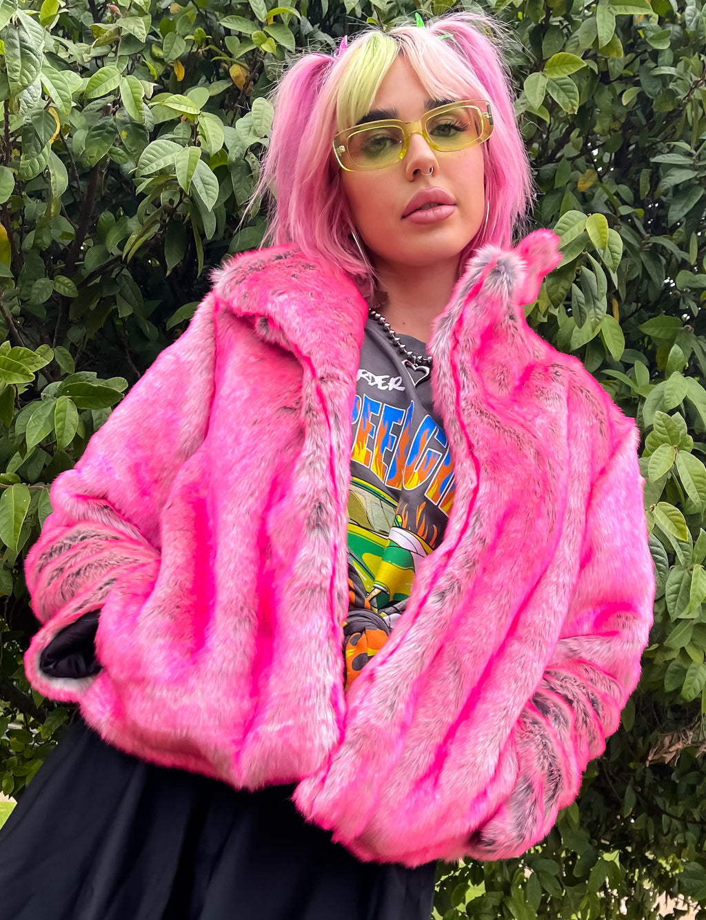 Barbie called and she wants her jacket back! We are beyond obsessed with this cute new pink faux fur jacket. You'll never be cold again after slipping this bad boy on. Super high quality faux fur and a super cute crop length, perfect for any occasion.