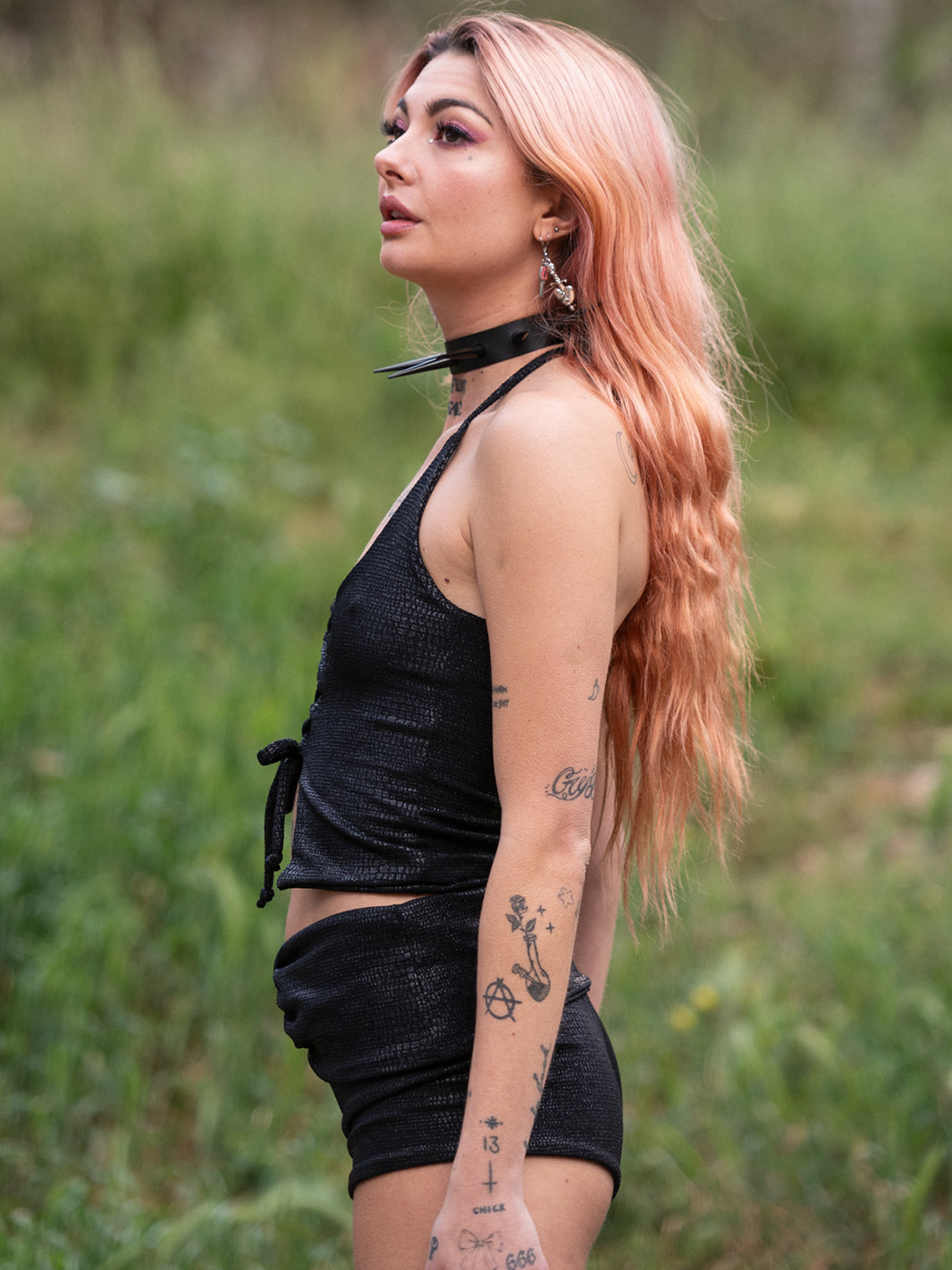 These cheeky booty shorts feature a sexy burnt black snake print and a fun o-ring waistband detail. And you know you want to wear it with the matching Aura Crop <3