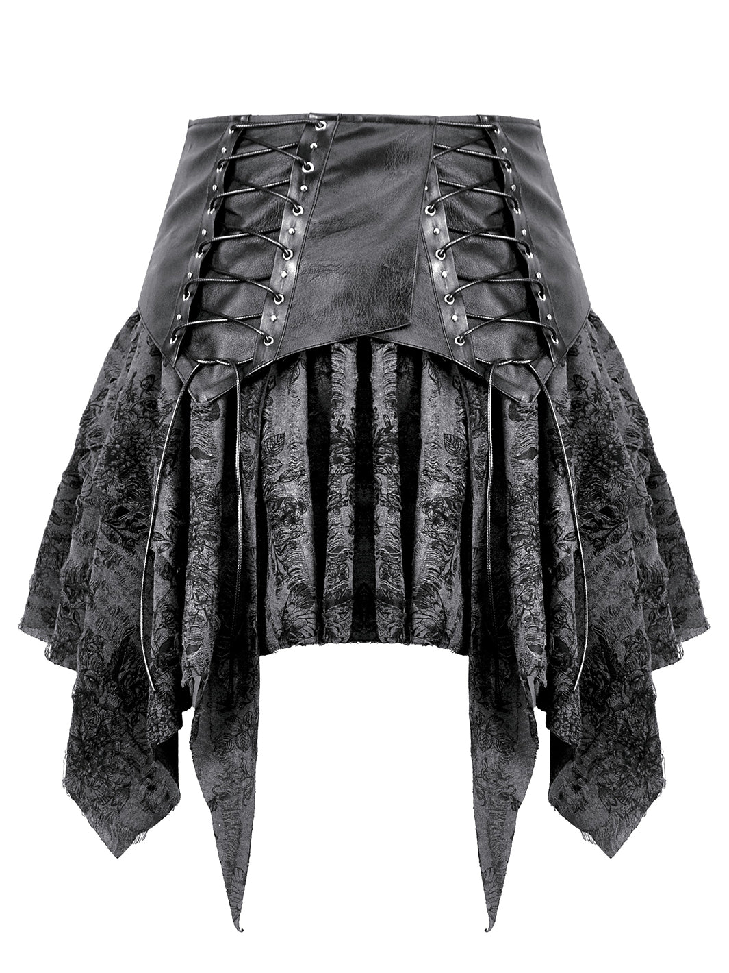 Leather and lace collide for a rebellious goth-punk moment. This asymmetric skirt mixes distressed butterfly-print fabric with hardware-heavy details for a look that’s equal parts sweet and edgy. Pair with the matching top for a look made in heaven!
