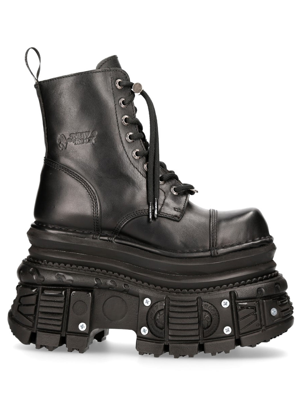Classic & chic - these are the words we think of when we look at these New Rock combat boots. Everyone needs a classic pair of boots and these have the perfect platform and will go with any look. Made from genuine leather, they have a platform adorned with screws and a zip for ease of use. The re-adjustable laces also make them easy to wear.