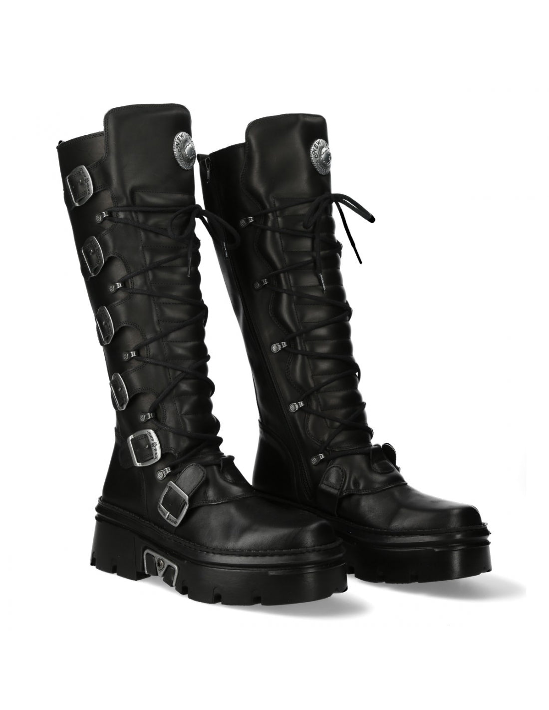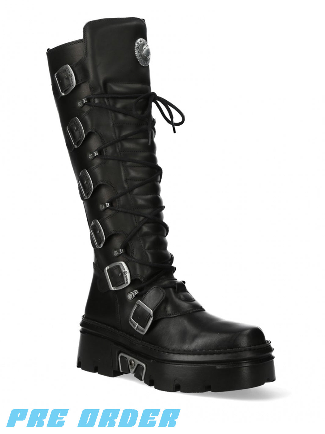 Level up in these iconic lace up combat boots. From the Metallic collection comes the M-WALL272-S1, a towering black leather boot with bold lace-up, buckle and zip details. Heavy, striking, and built with New Rock’s signature platform - a true classic loaded with attitude and premium craftsmanship.