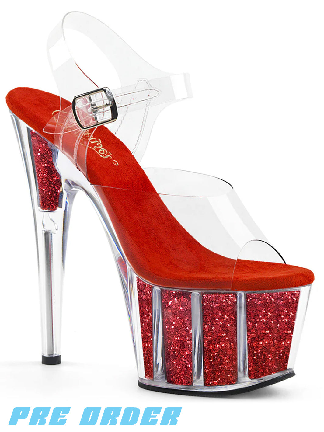 7"" (178mm) Heel, 2 3/4"" (70mm) Platform Ankle Strap Sandal w/ Glitter Inserts In the Platform Bottom