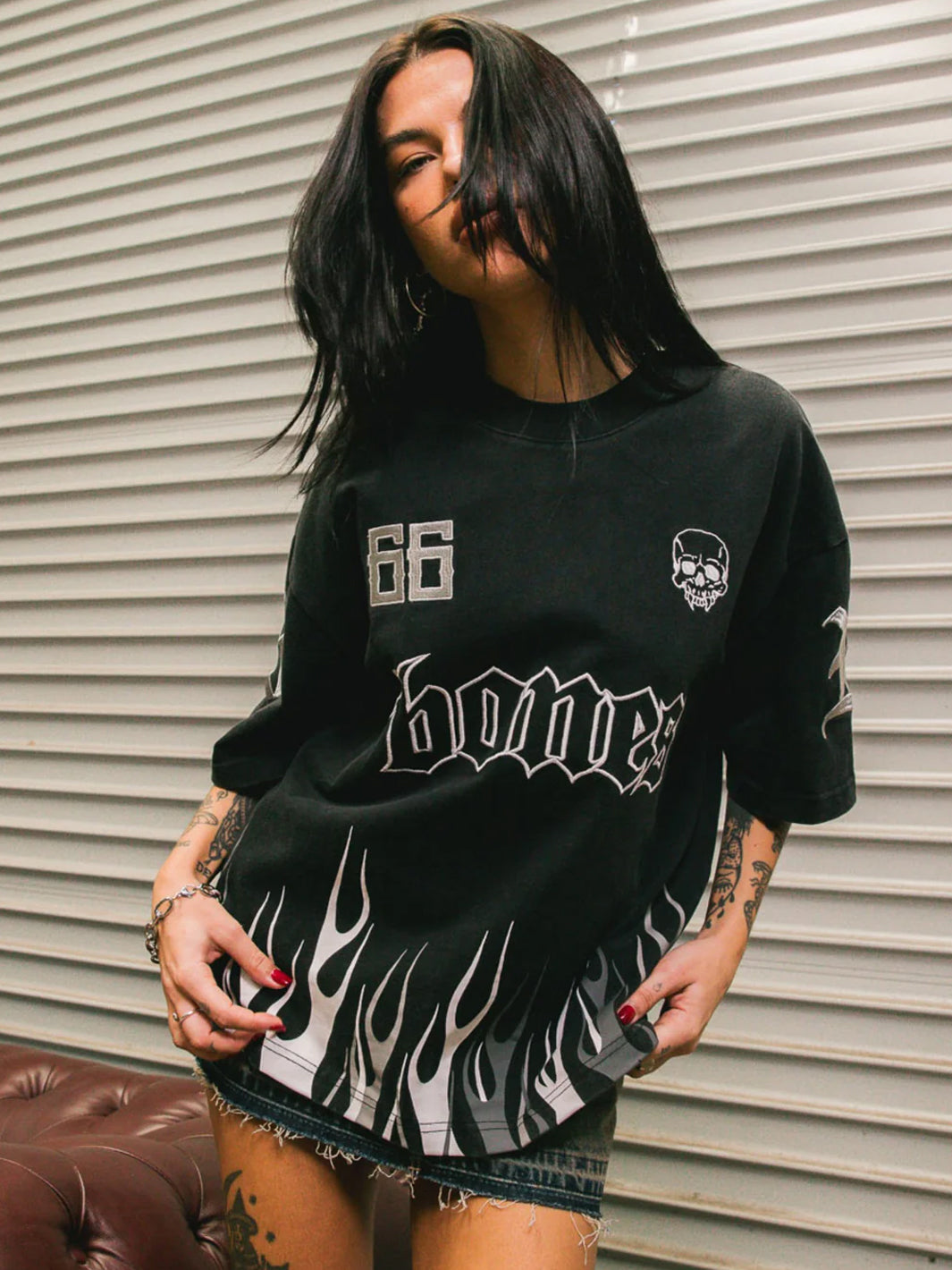 Join the good (or bad) team.The Burner Boxy Tee brings serious heat with flames rising around the hem and embroidered details across the front and back.
