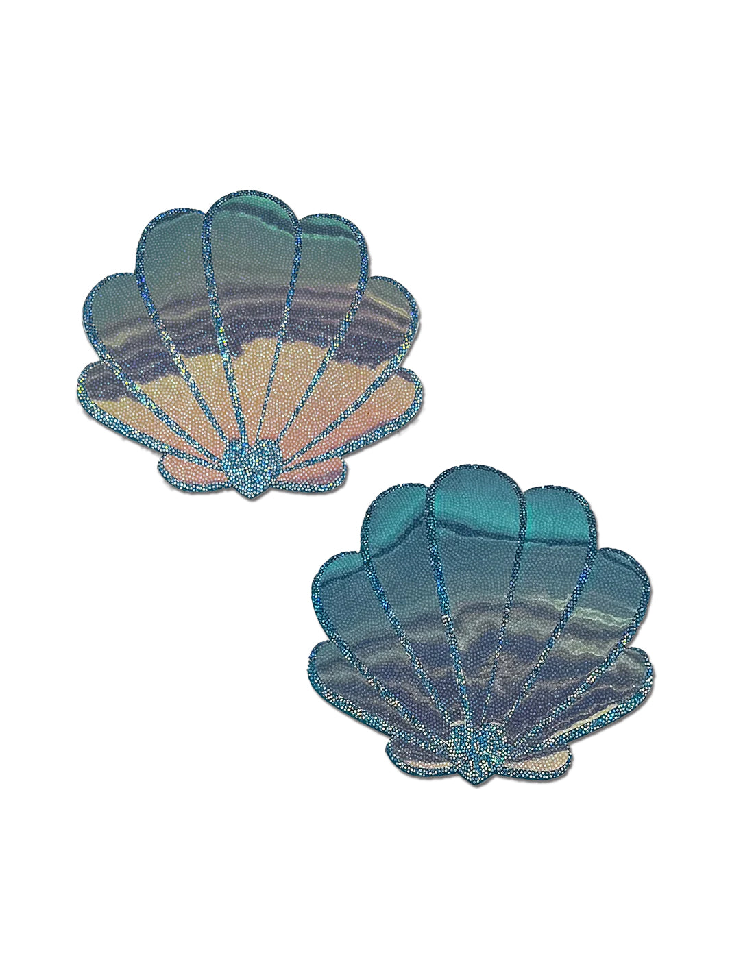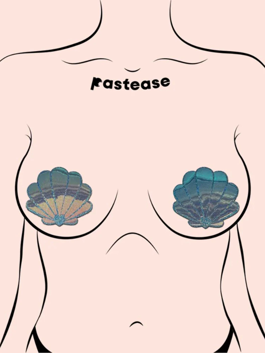 MERMAID SHELL NIPPLE PASTIES - AQUA HOLO