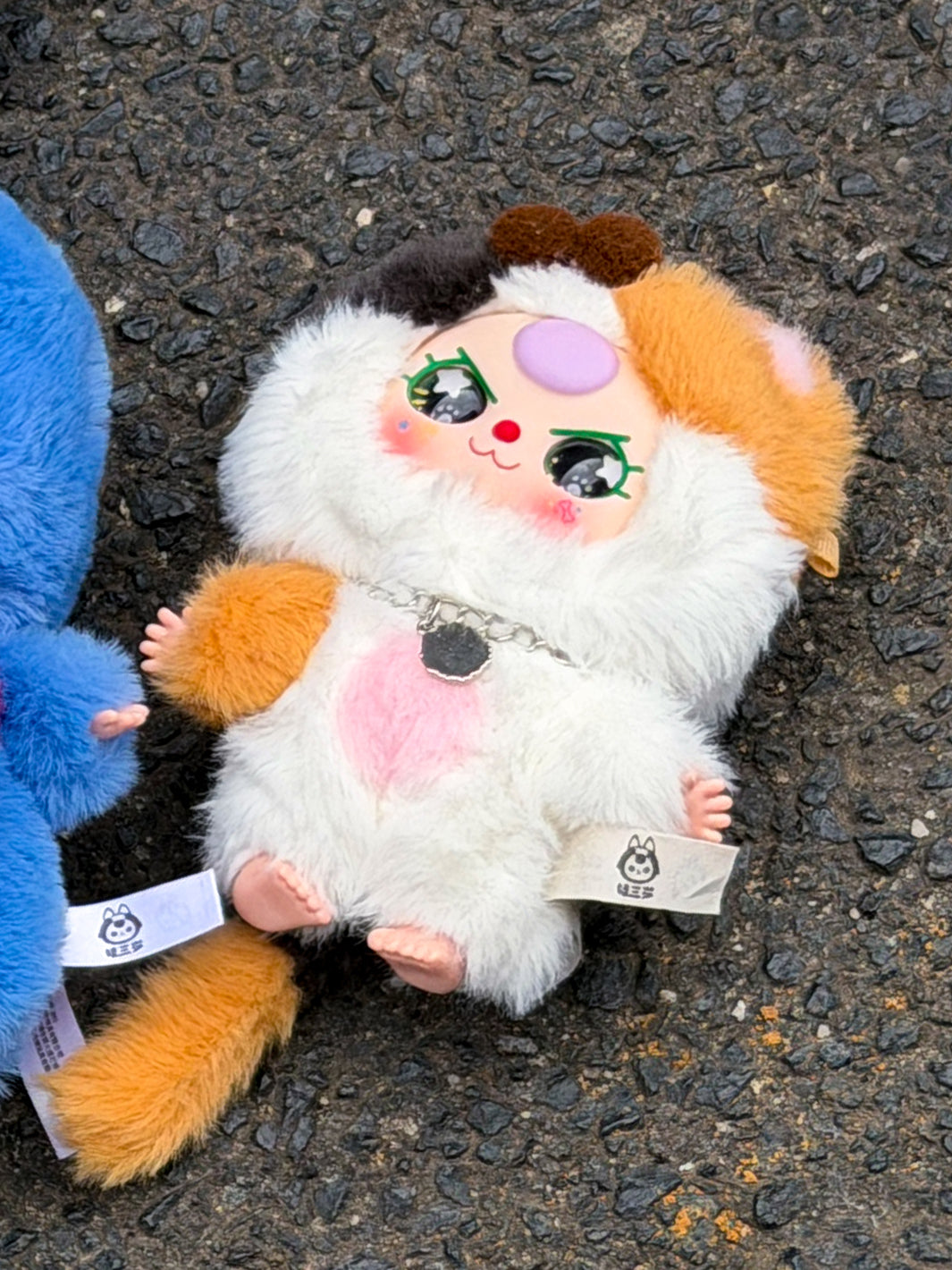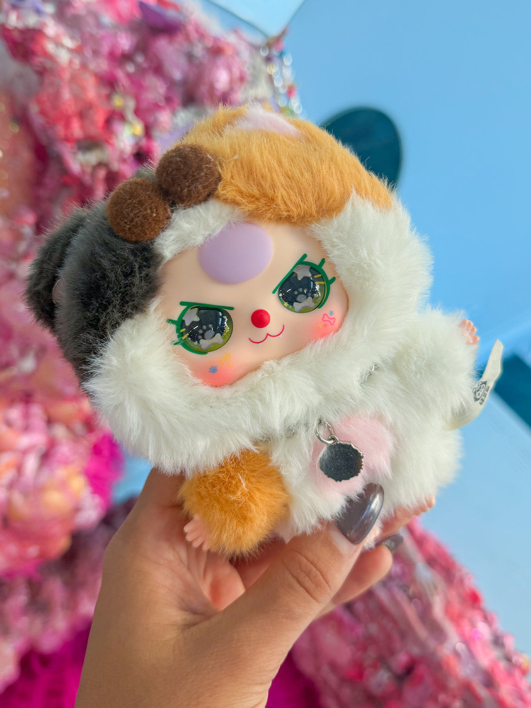 Who are you going to pull? Meet the Baby Three Cats & Dogs blind box series, featuring soft plush vinyl pendants in playful, collectible designs. Each box hides one random plush pendant with quirky details and a cheeky charm, ready to clip onto your bag, keys, or collection shelf. With 8 regular styles plus 2 hidden rare editions, every pick is a surprise.