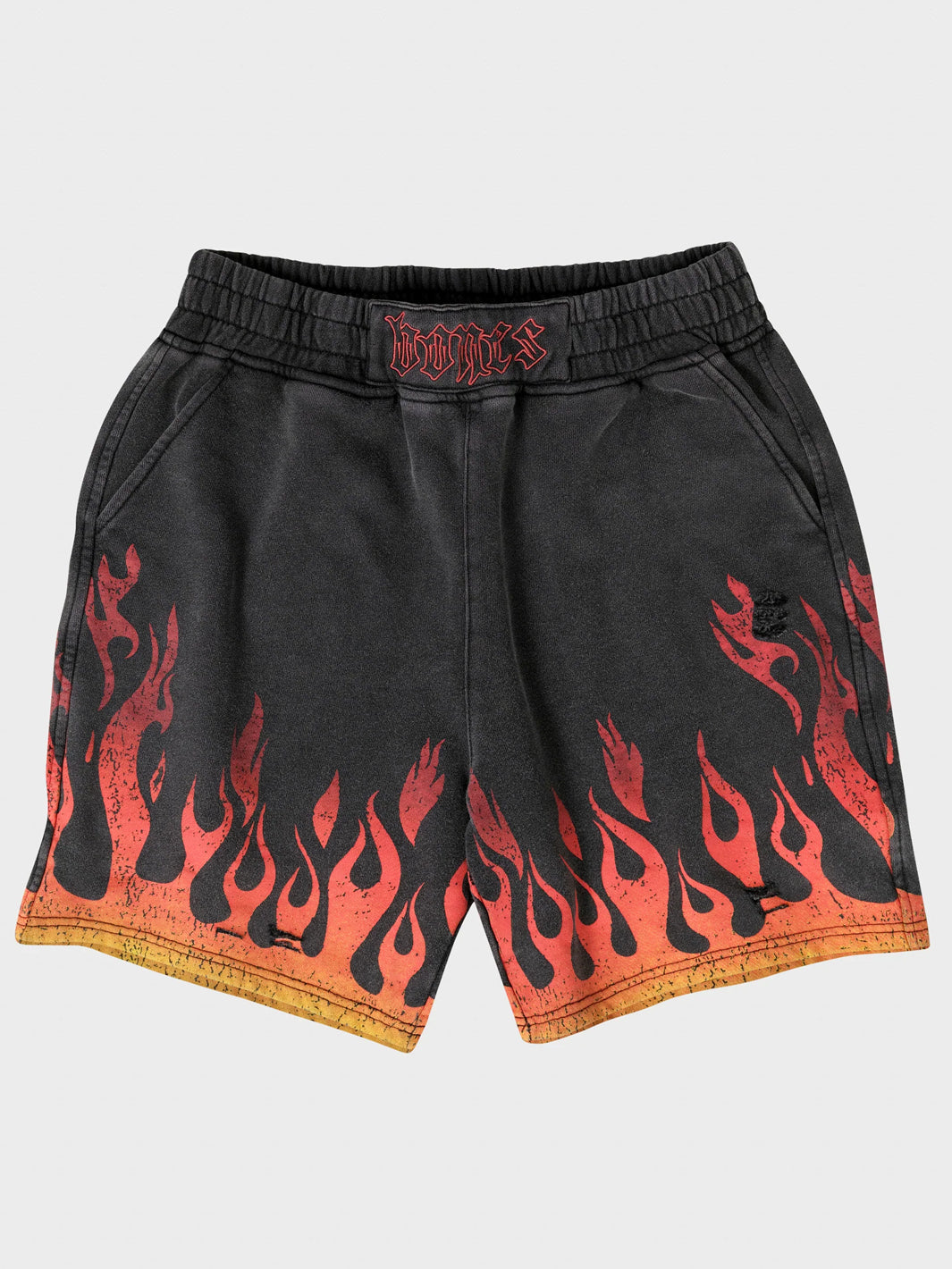 Introducing the hottest Burners yet - Billy bones have added fresh twist to these classic shorts! As if things weren't hot enough already... same cozy fit, now in washed black with bold red and orange flame detailing. Stop, drop and roll, fam. 🔥