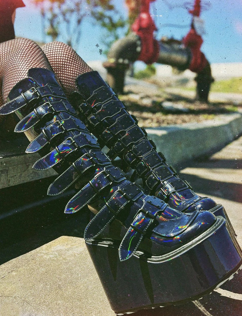DEMONIA SWING-815 - BLACK HOLO PATENT ✰ PRE ORDER ✰