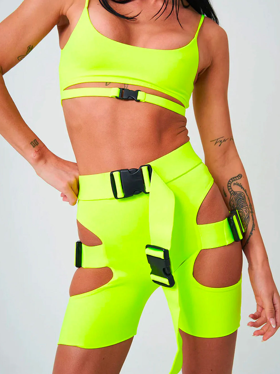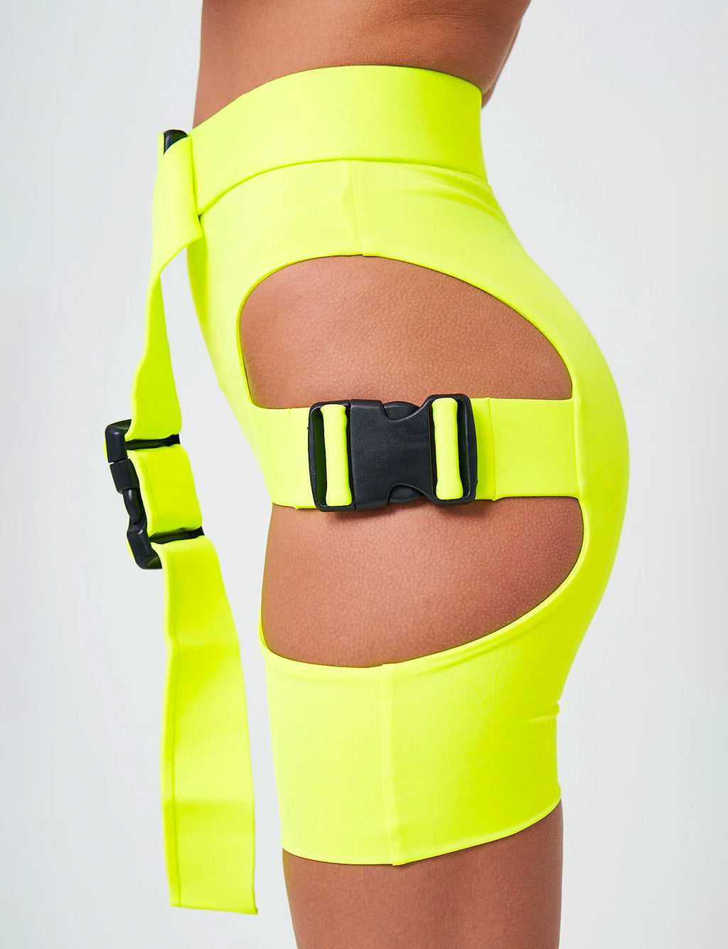 For the edge above the rest, slip into these Lipt the Label neon yellow Buckle Shorts! Make a statement in the detachable belt and double layered fabric made for those hot doof days.