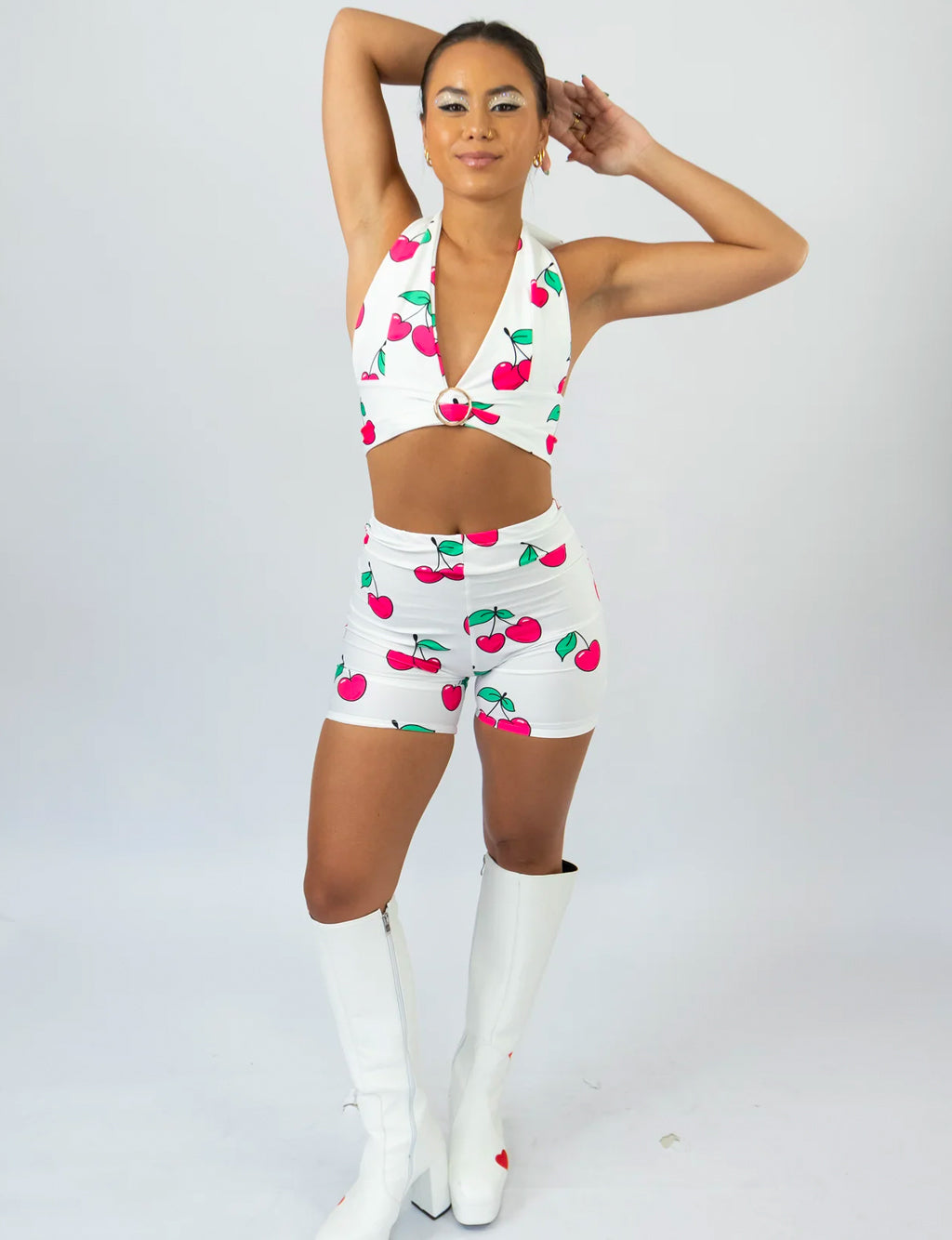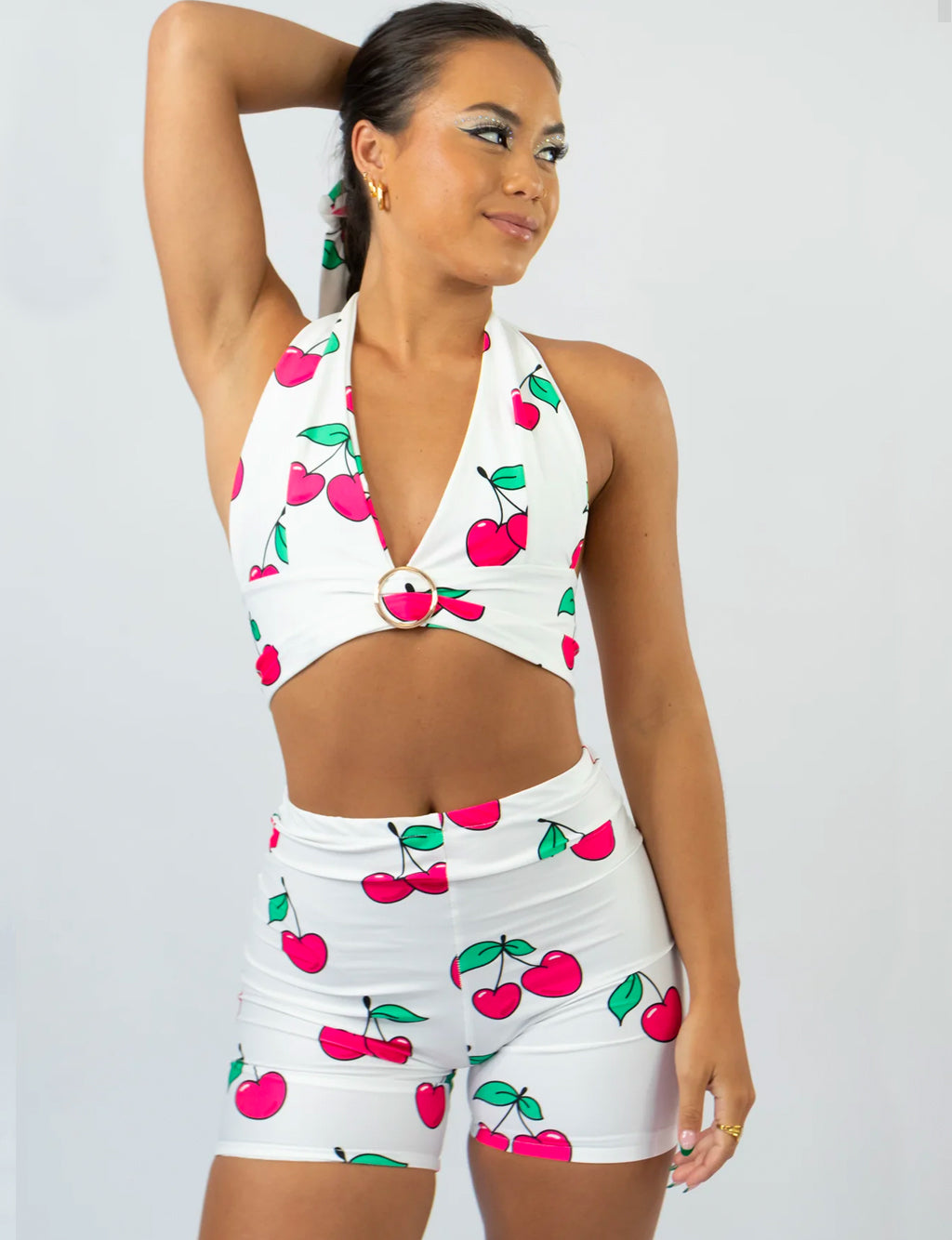 The sweetest lil bike shorts - They are simply sweet with a cherry on top, super flattering and comfy fit. Easy to style and can worn to the gym, out to brunch or at your next festival.