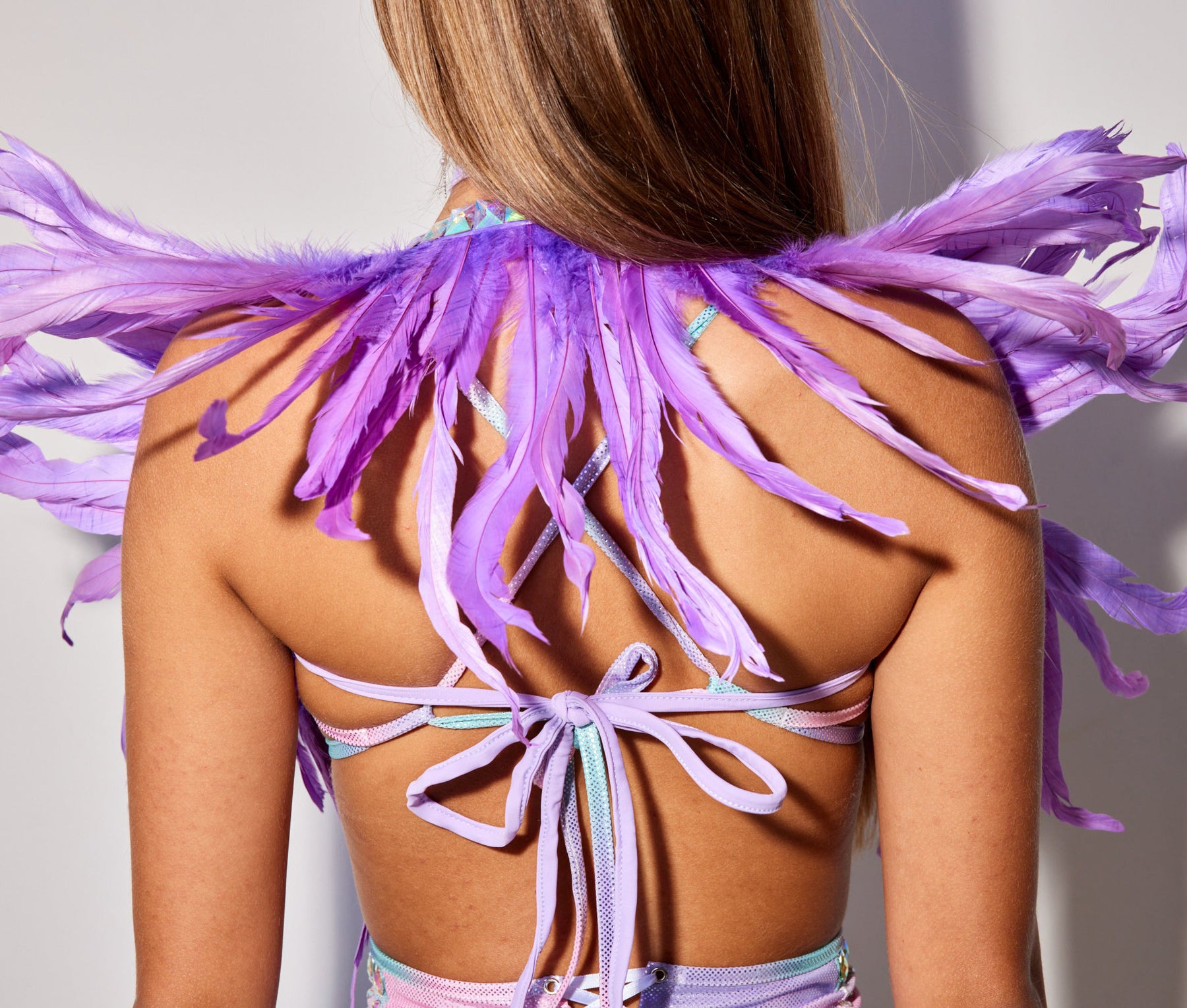 Bring the SHOWGIRL energy to life with this gorgy lilac feather shawl – the ultimate finishing touch for your carnival fit. Designed to wrap around your back and arms, this beauty ties up perfectly to frame your carnival bra and sparkle on the dancefloor.