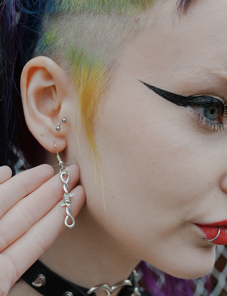 We're obsessed with barbed wire details right now! These earrings are the perfect topper to any look, wear them as a statement piece or layer them up with your jewels.