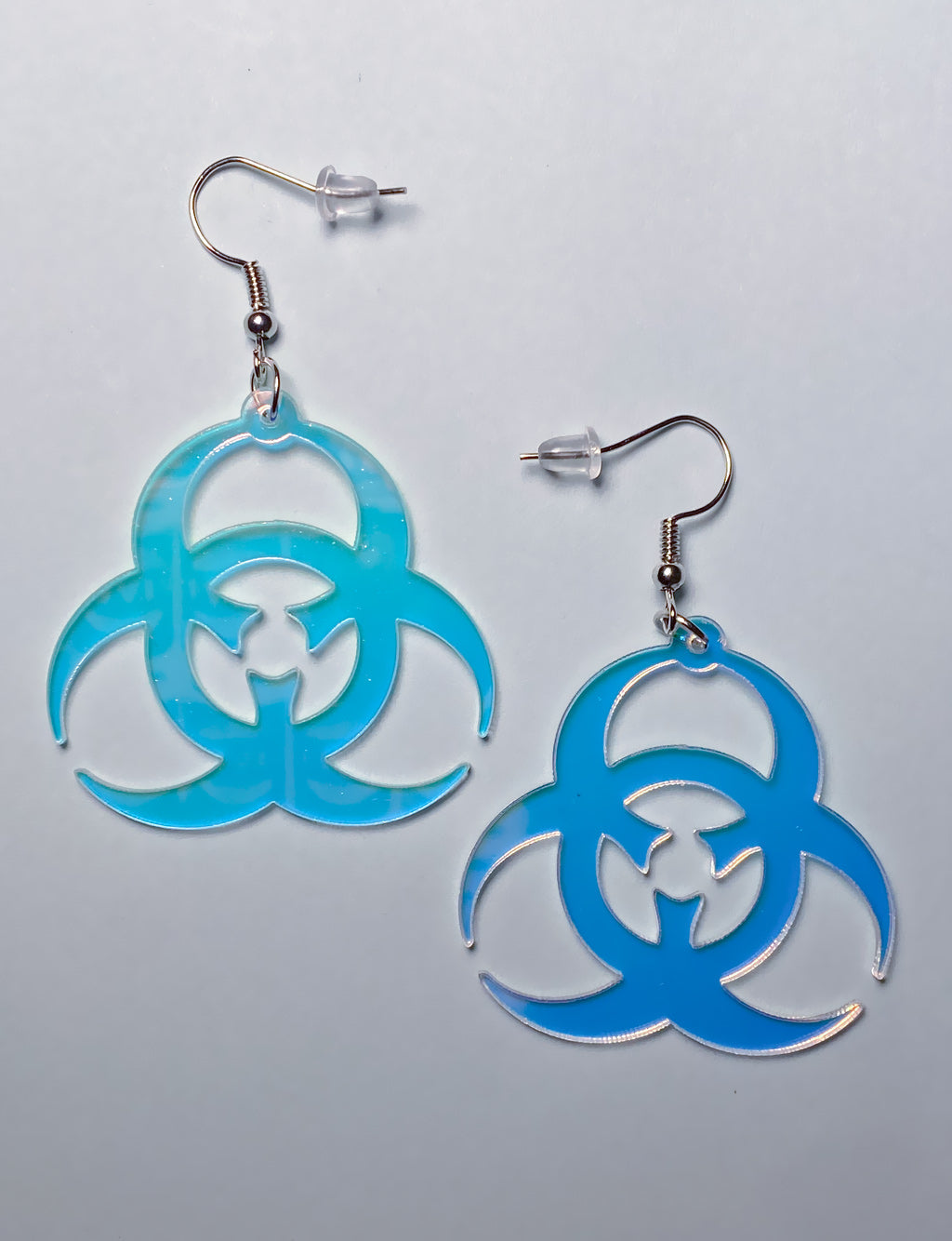 Your toxic, we're slipping under! No toxic energy ever please, unless its this hawt radioactive symbols hanging from ya lobes and if this is the case, give us these toxic earrings in this magical holo acrylic stat.