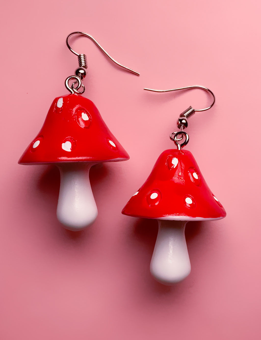 Cute, coloured mushrooms for everyday of the week, hang this cute little toad-stills from your ears and you start feeling the force of mother nature in no time.