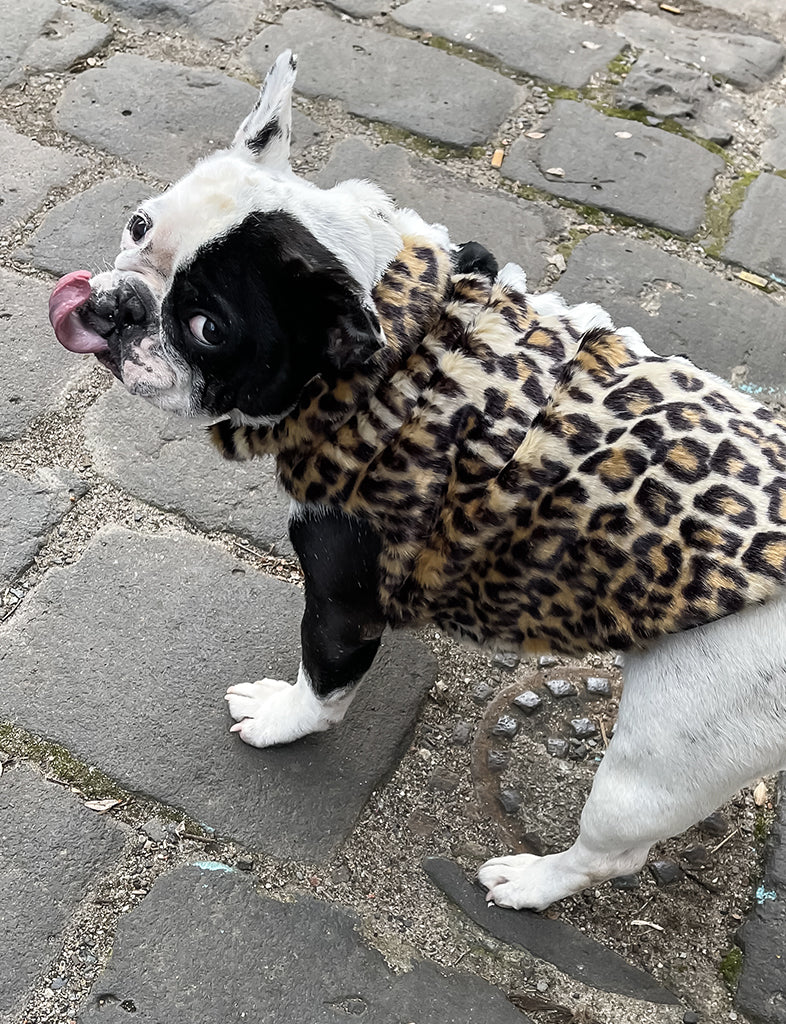 In a V on trend cow print / leopard print split, the Jungle Faux Fur is a must for the season! With quilted lining, it is cute & cosy all rolled into one. PLUS you can twin with your Fur Baby by snapping up a matching human version HERE!