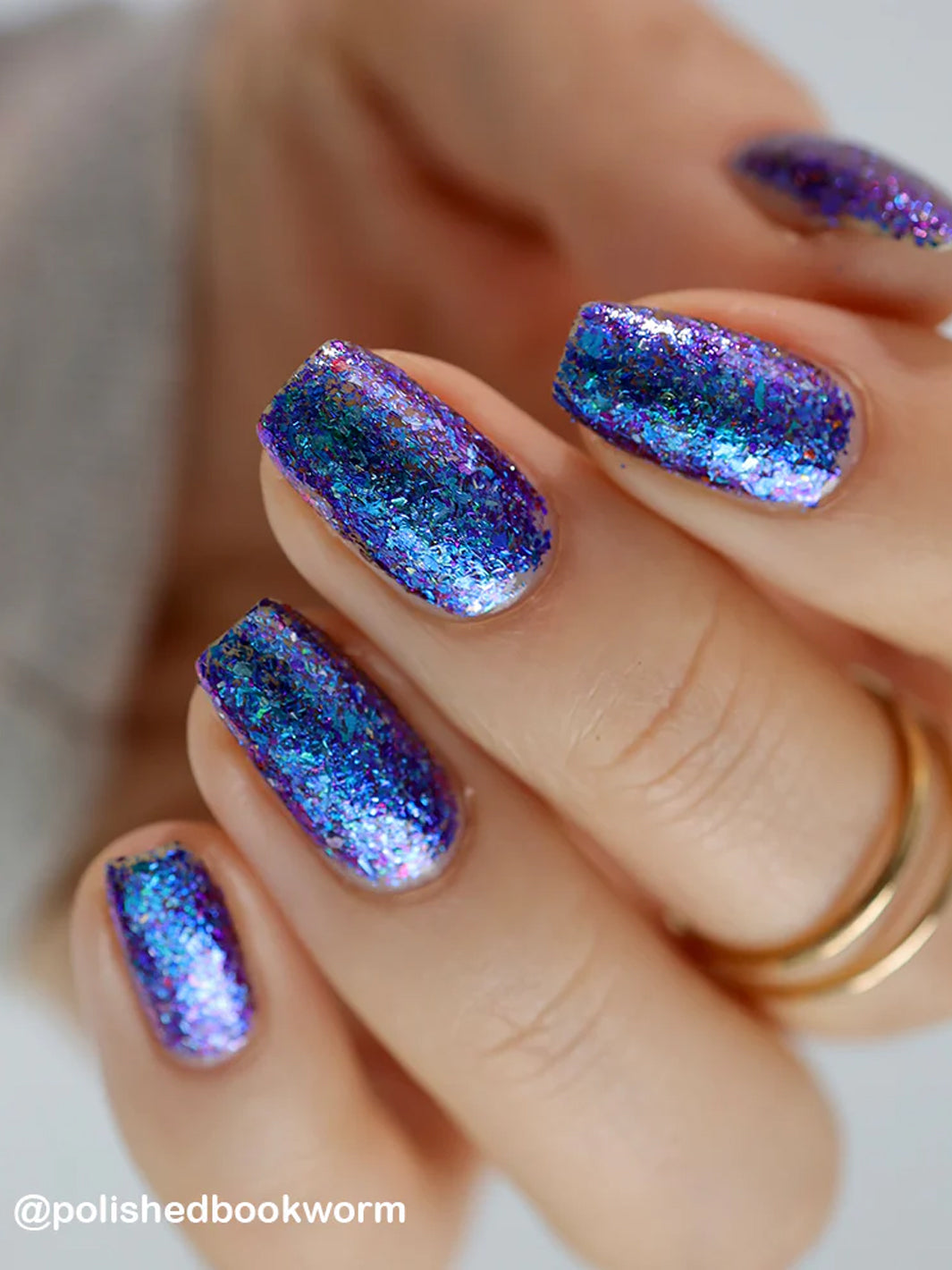 Is there such a thing as too much chrome? We think not, the Burnout shade is a magical colour made for nails. Made up of irregular large multi-chrome flakes with a violet, blue and green shift.