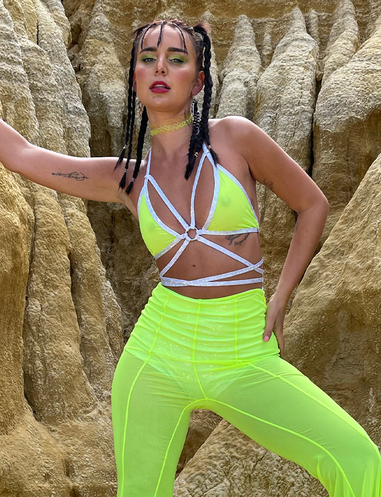 TRIANGLE WRAP TOP - NEON YELLOW MESH