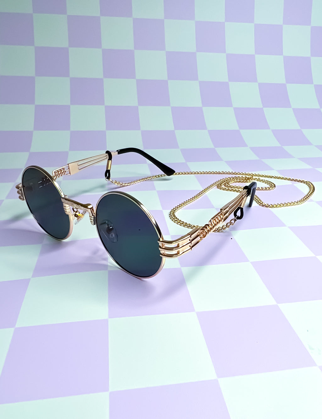 Slip these cuties onto your shades & never loose em again! A thin & subtle chain action, elastic ended to fit any shade.