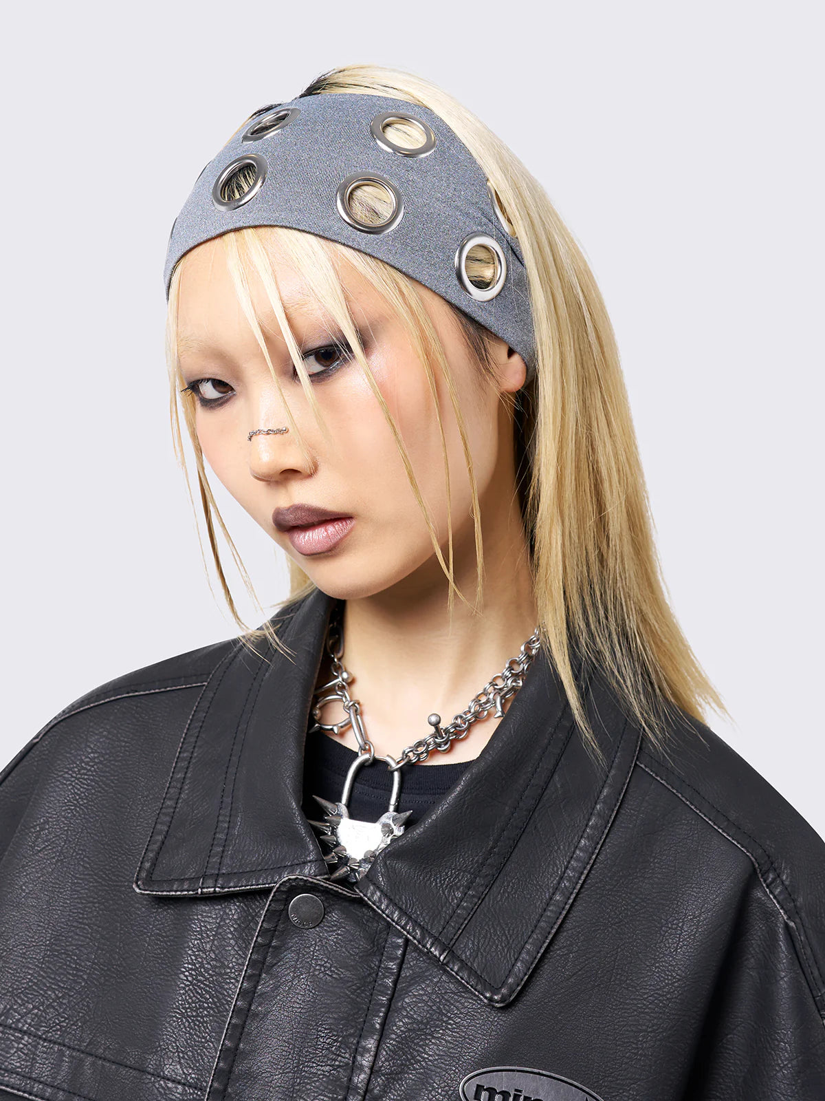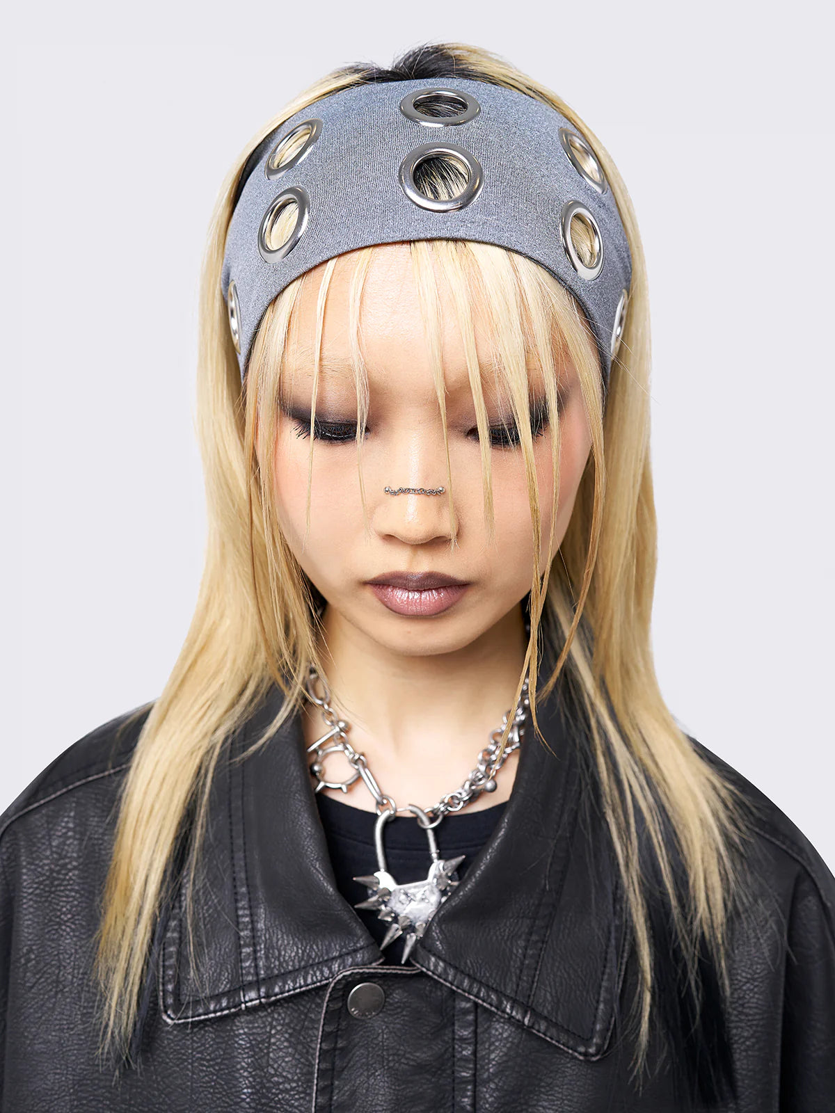 This headband is the perfect finishing touch to any of your fits, in a staple grey with edgy eyelet details - you won't wanna take it off!