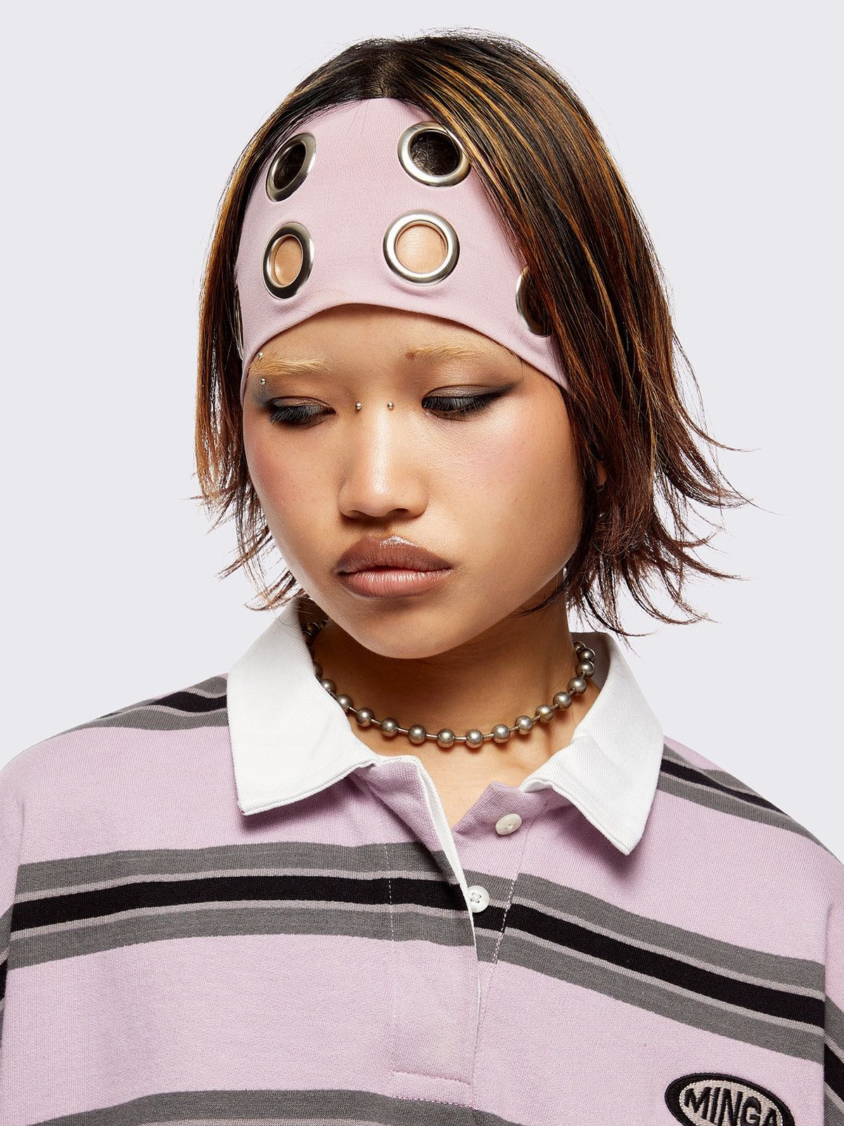 This headband is the perfect finishing touch to any of your fits (and it's got your back on a bad hair day) - in a soft pink finished with edgy eyelet details - you won't wanna take it off!
