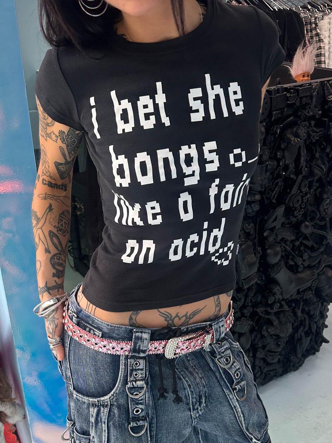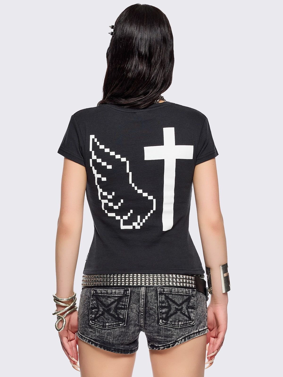 Don’t ask. Just read the damn tee. Black, slim fit, and loaded with attitude – with a bold slogan up front and a cross-and-wings print on the back.