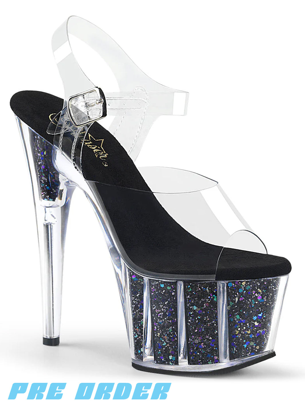 7"" (178mm) Heel, 2 3/4"" (70mm) Platform Ankle Strap Sandal w/ Confetti Glitter Inserts in the Platform Bottom