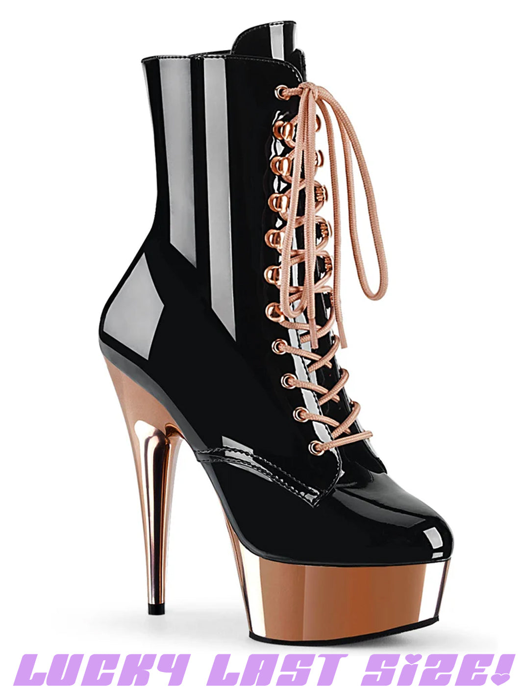 DELIGHT-1020 - BLACK PATENT/ROSE GOLD - WOMENS US SIZE 8