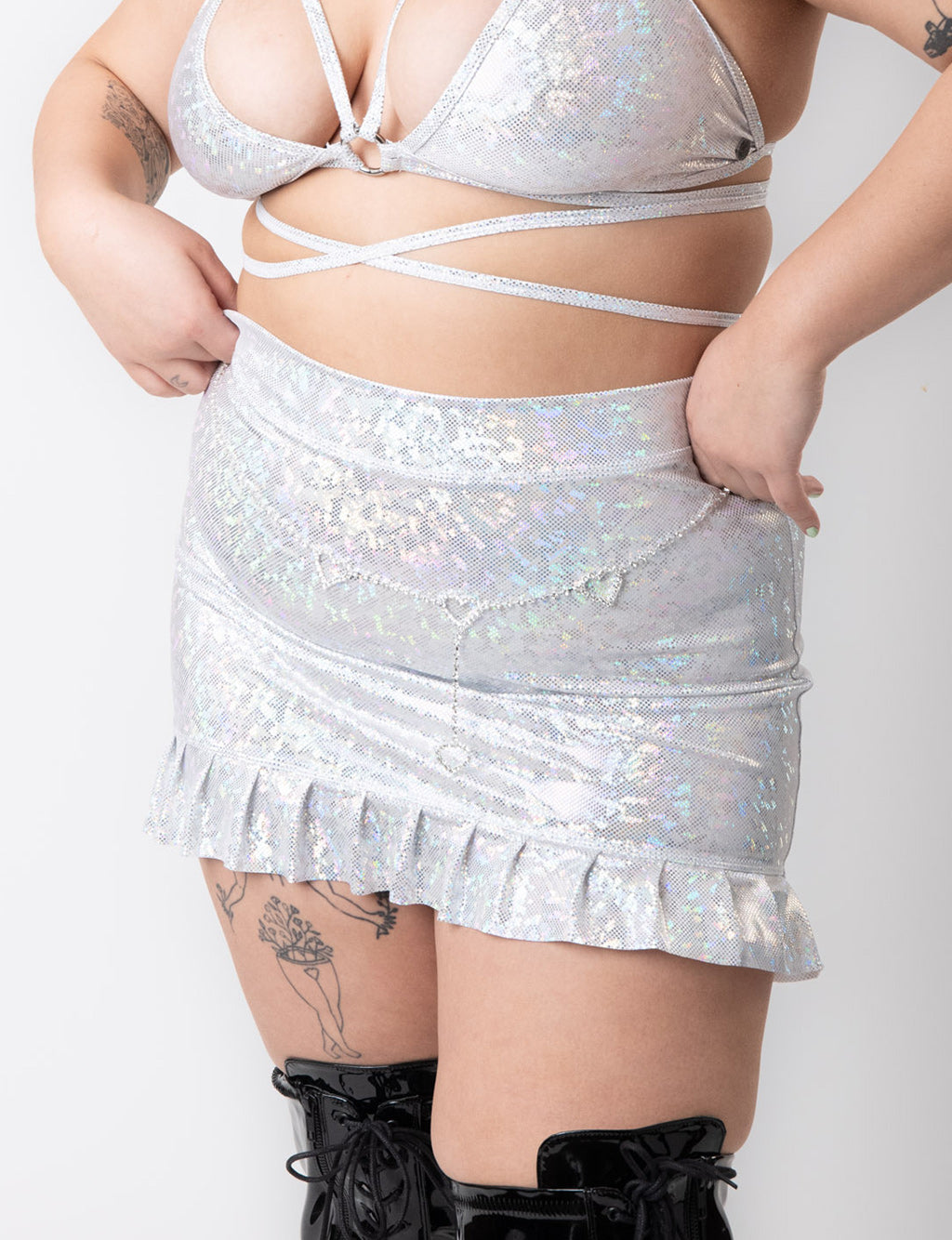 Handmade from shimmering lycras in golds, silvers, pinks rainbows and more! Plenty of cute mesh & wrap around details to finish your look for the next doof!