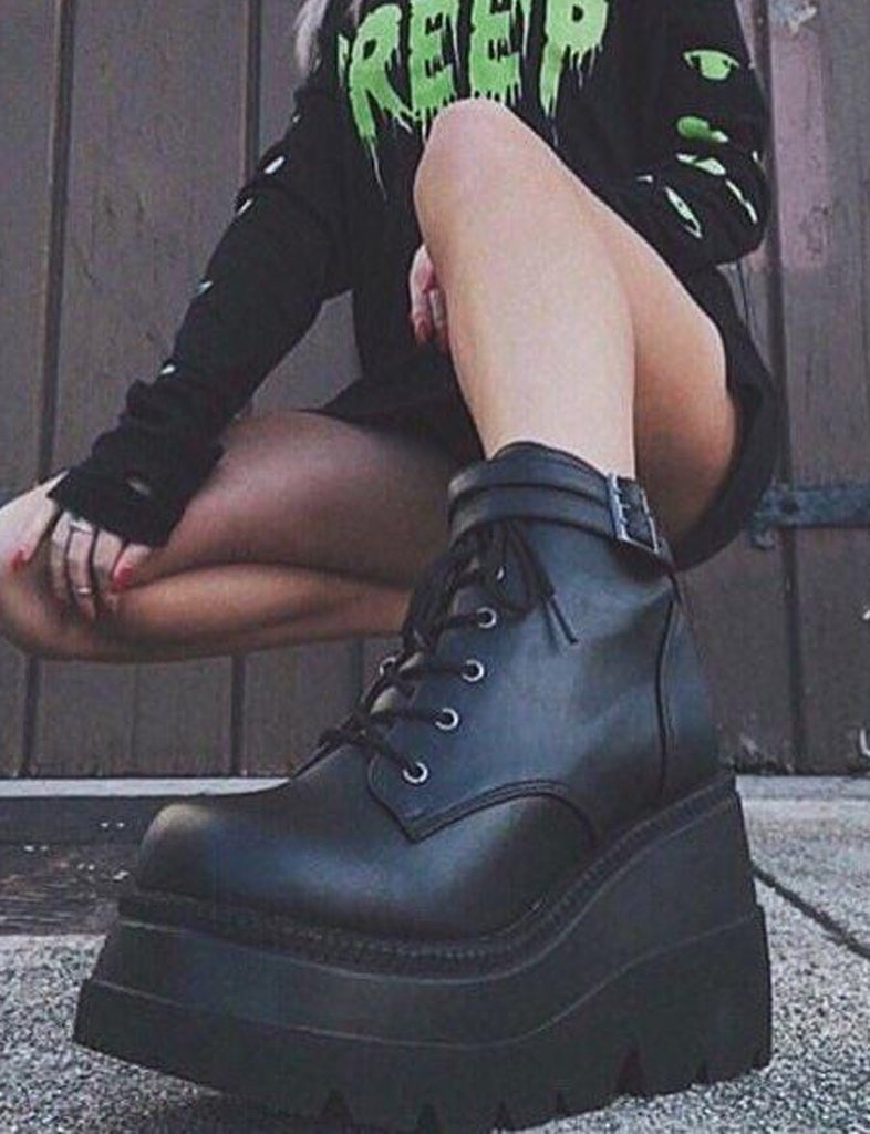 DEMONIA SHAKER-52 PLATFORM BOOTS - BLACK ✰ PRE ORDER ✰