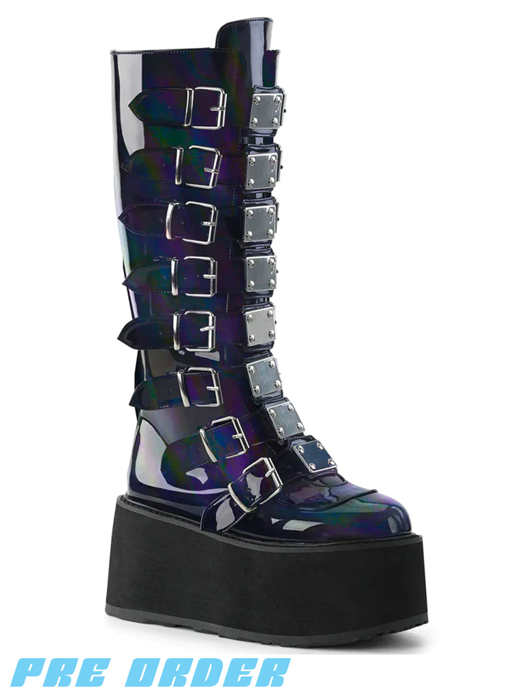 DEMONIA DAMNED-318 - BLACK HOLOGRAM VEGAN LEATHER ✰ PRE ORDER ✰