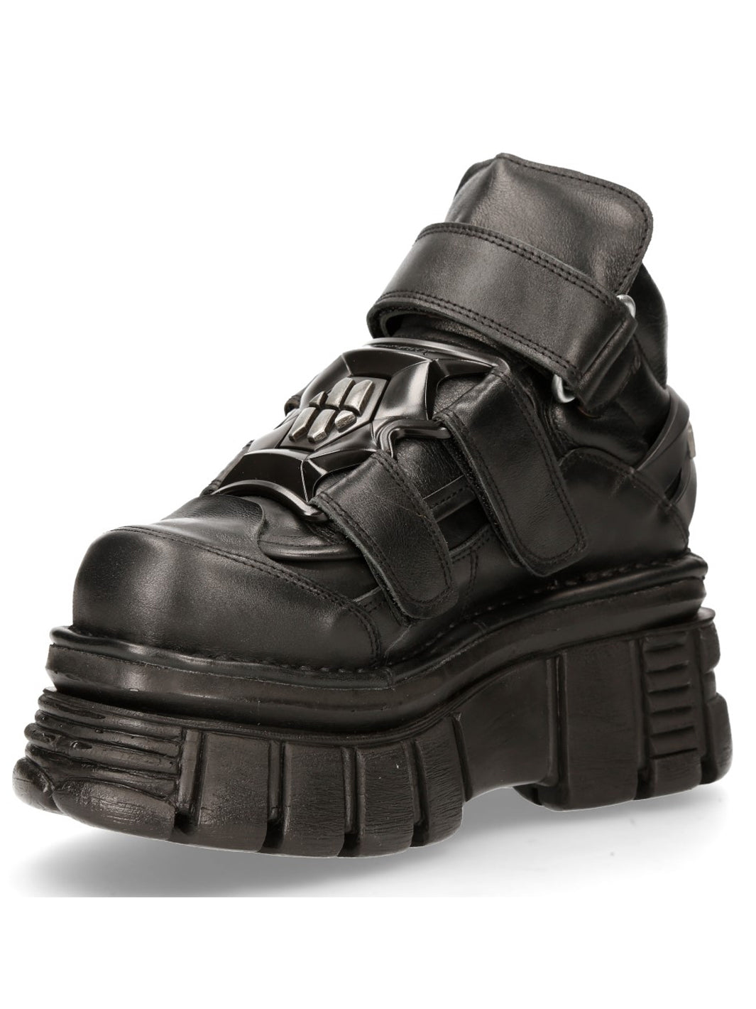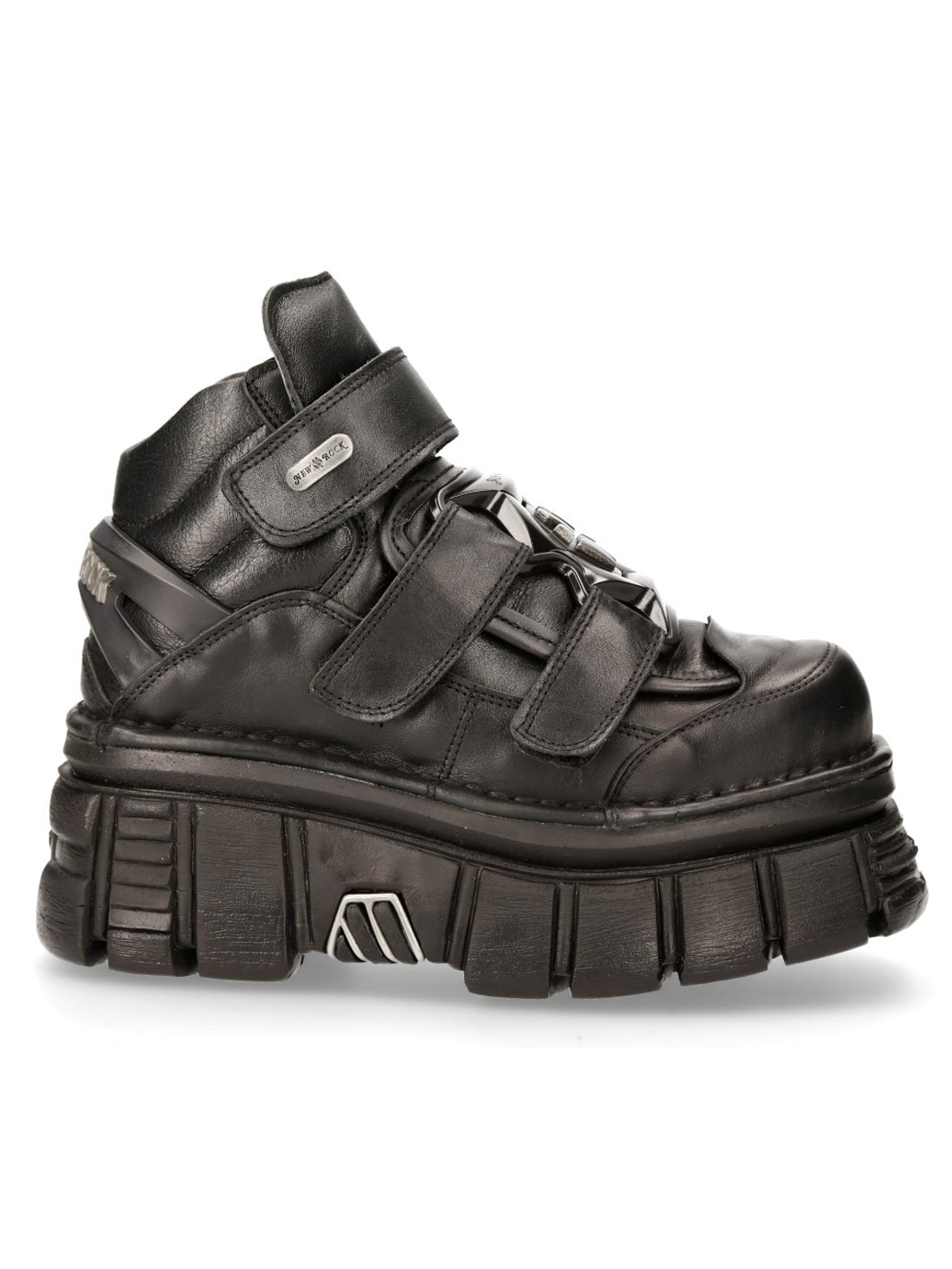 Bought to you by the Metallic collection from New Rock. Step into the night with these chunky platform essentials. Decked out with silver hardware, easy slide on and off velcro fasteners and genuine calfskin leather.
