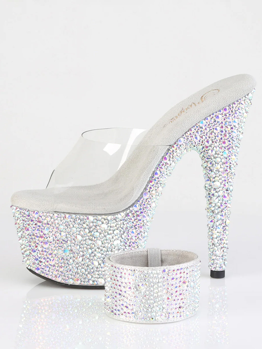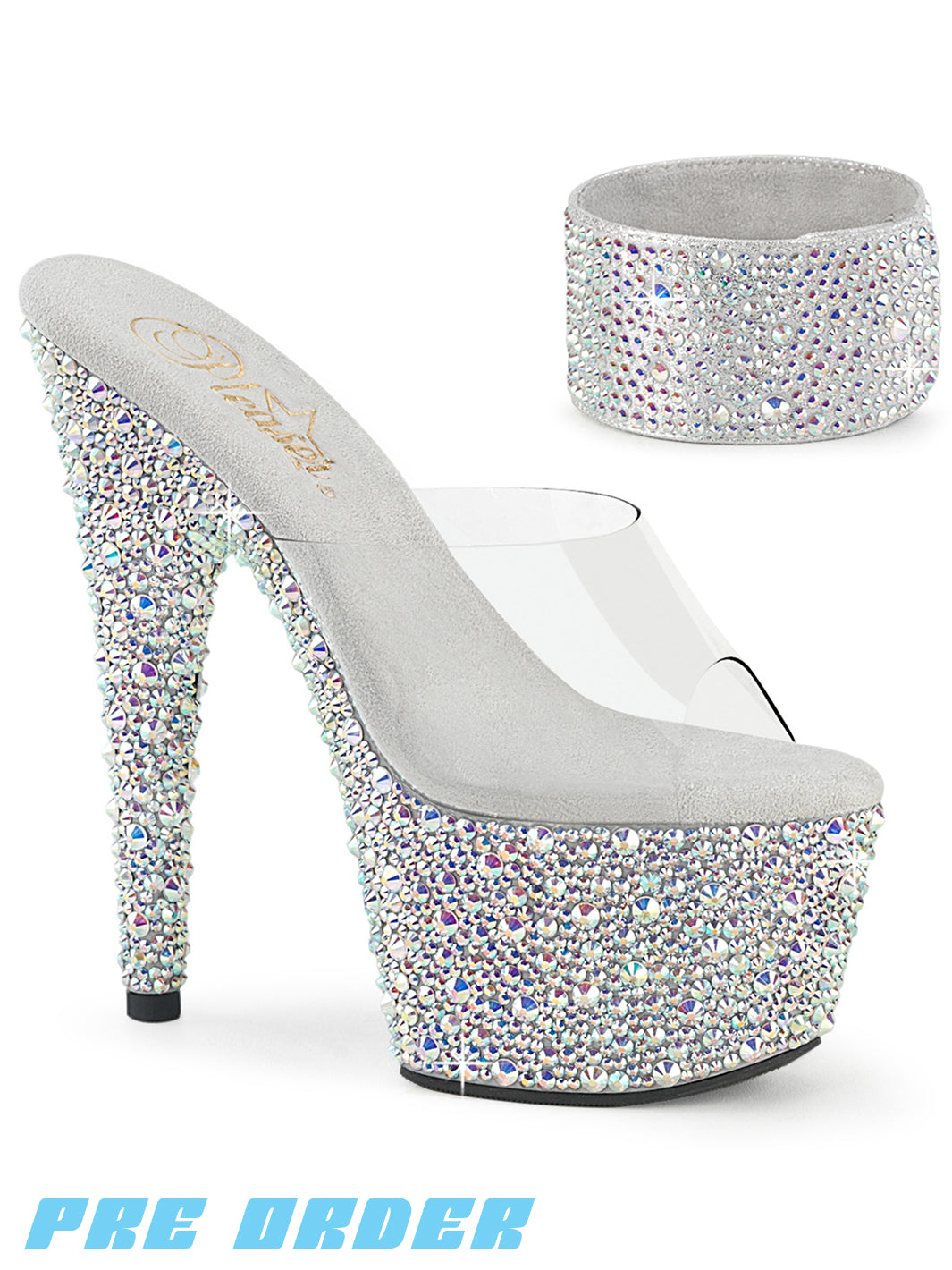 We offer a large range of pole dancing heels to complete your look from our faves Pleaser Footwear. Get you're thigh high, knee high, mid calf, ankle boot heels, mary janes, clear, UV reactive, glitter, strappy sandal and more.