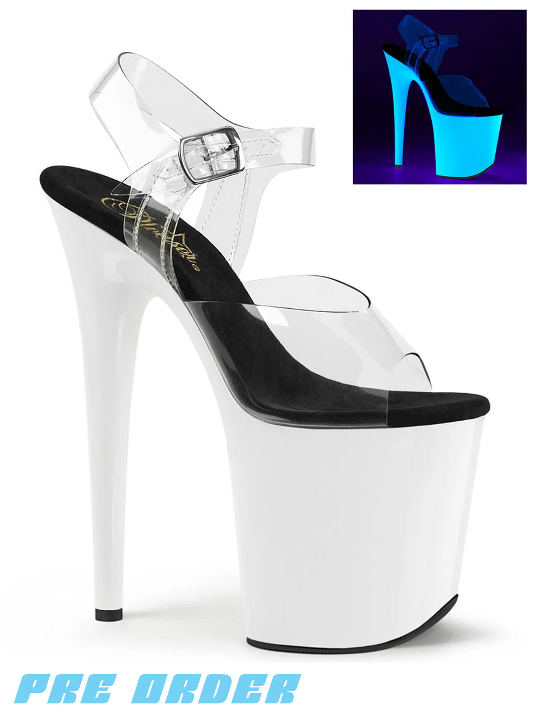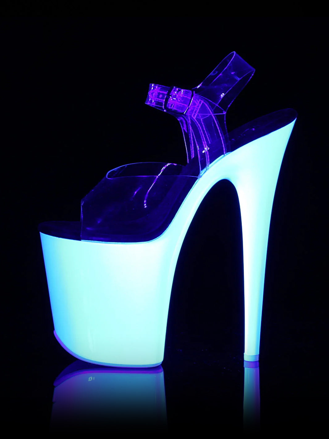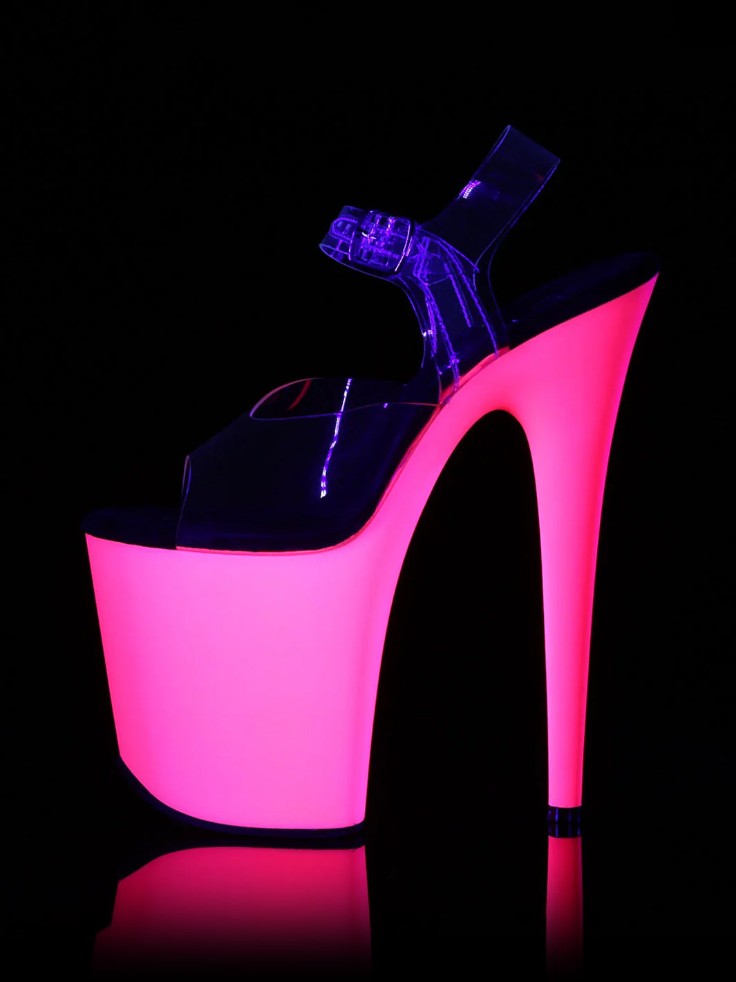 8" (20.3cm) Stiletto Heel, 4" (10.2cm) Platform Ankle Strap Sandal Featuring the Entire Platform, Outsole & Toplift Neon UV Reactive