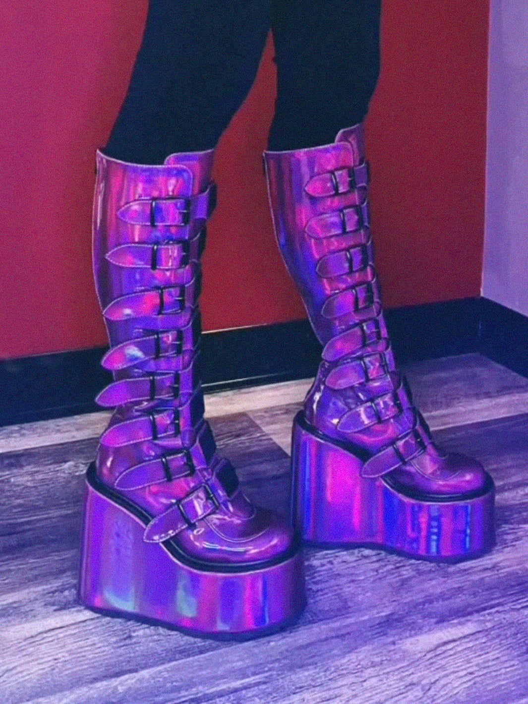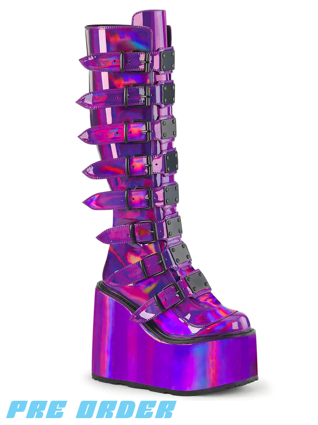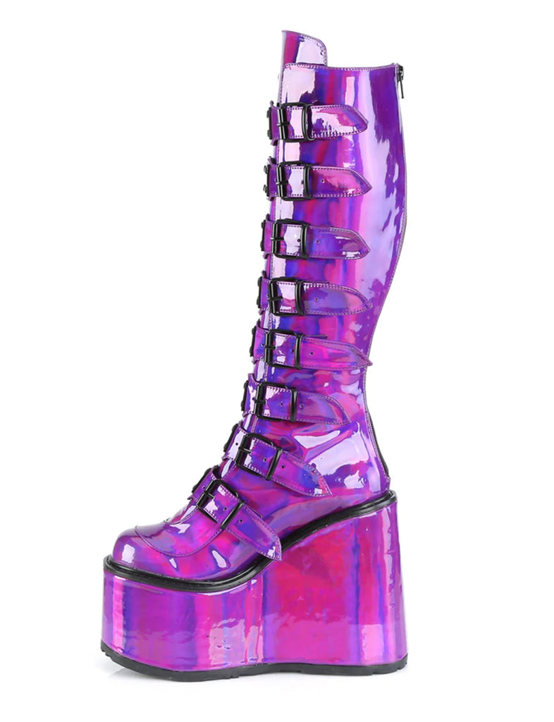 DEMONIA SWING-815 BOOTS - PURPLE HOLOGRAPHIC ✰ PRE ORDER ✰