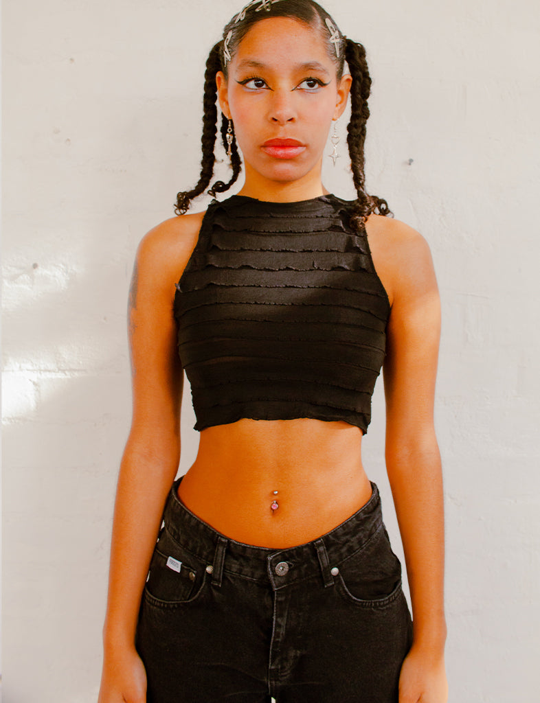 Look fierce in The Gloria Crop from our ☆ LUCKY YOU ☆ capsule collection with Soulan Zee. Handmade in Melbourne from a gorgeous black ruffle fabric and available in sizes for all. Sizzle on your spesh night with this luxe crop - style it up with the matching skirt or style down with jeans for an easy day fit.