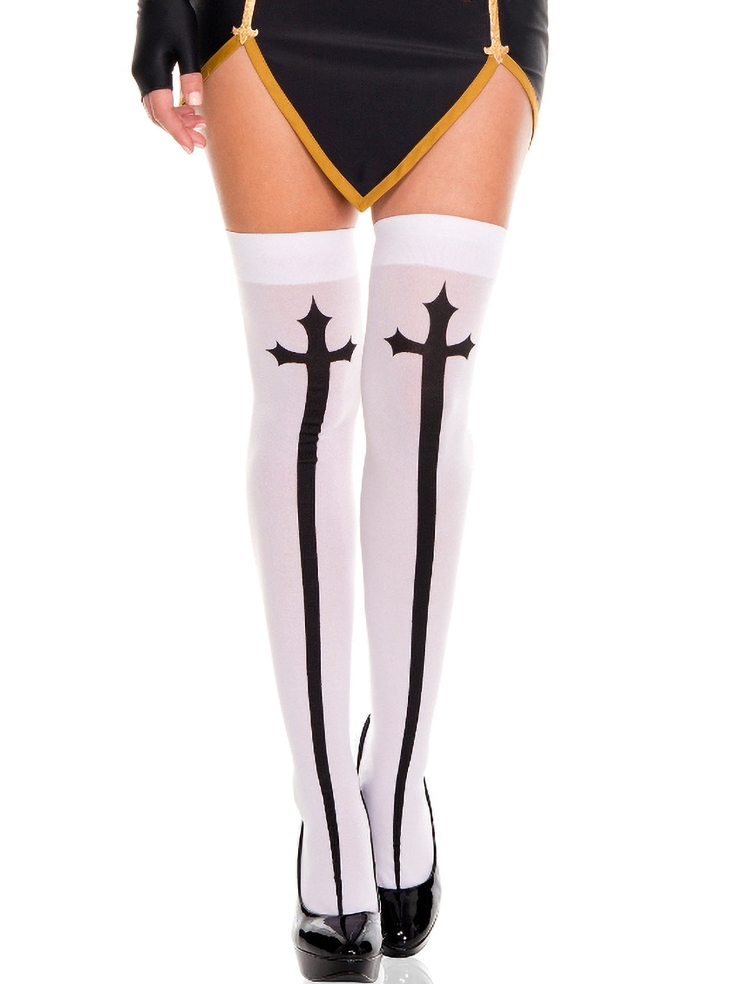 GOTHIC CROSS THIGH HIGH STOCKINGS - WHITE