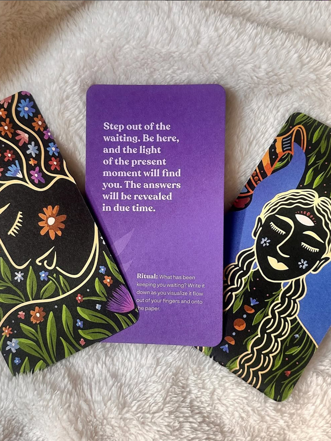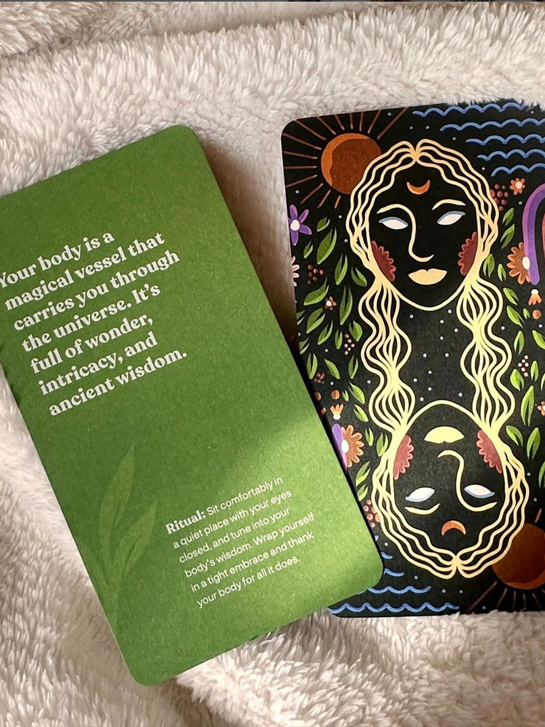 - Each card includes one uplifting affirmation and one ritual for self-discovery