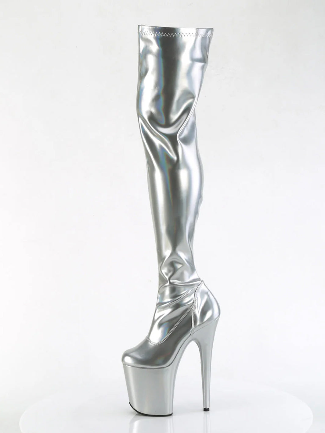 High-shine and unapologetically bold — these thigh highs are made to own the room from every angle.