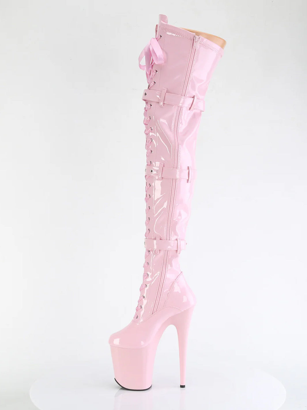 Take your shoe game to the next level with the Flamingo-3028, the ultimate statement piece. These thigh-high boots boast a towering 8-inch heel and 4-inch platform, making them the perfect choice for dancers, performers, and those who love to stand out from the crowd.